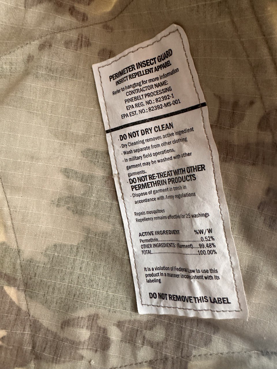- Ці сорочки оброблені засобом від комах Permethrin.
