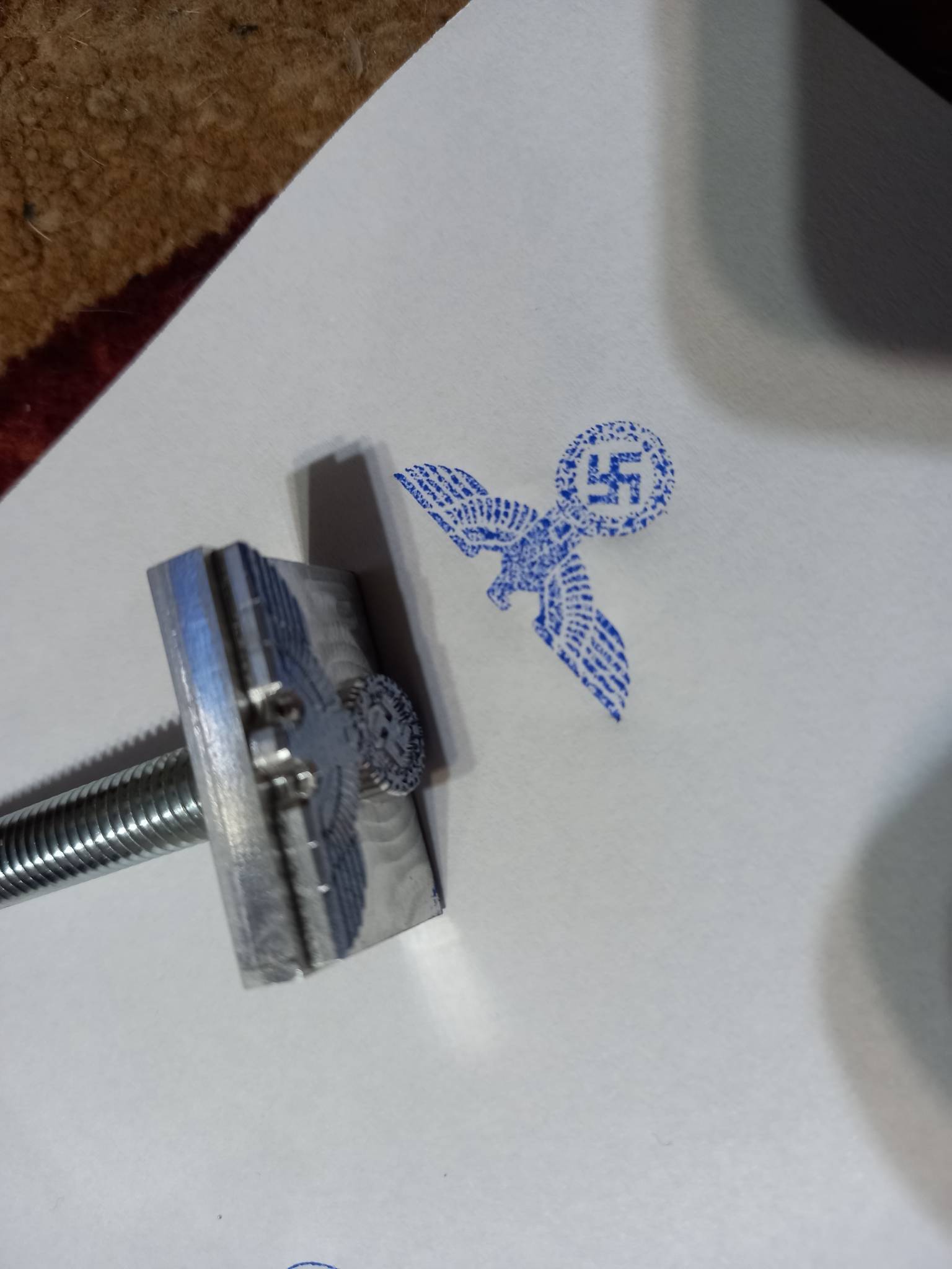 Клеймо 3 рейх. Чудове новеньке металічне клеймо . Металічне ,придатне для поставки клейма ударним способом чи термічним. ( паяльник накручується) можна через золоту чи срібну плівку робити тиснення чи просто молотком. Можна ставити на шкіру. Тканину ,папір . Зроблено відповідно розмірів оригіналу