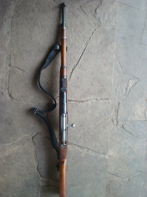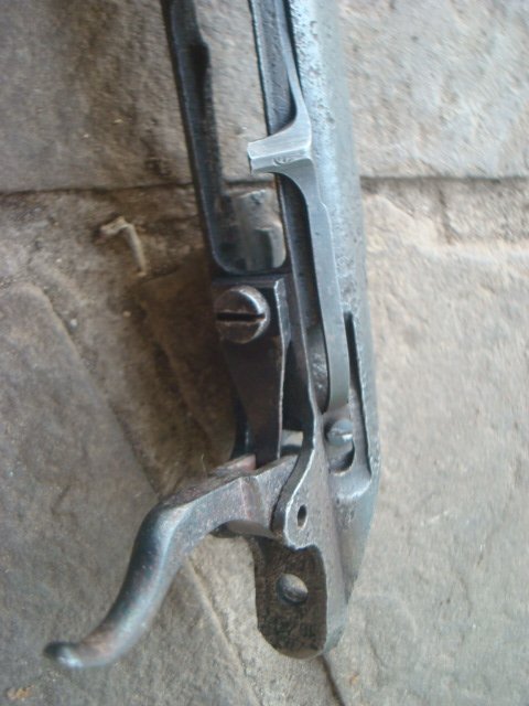 Экземпляр сборной, ствол сделан из винтовочного. Все работает, щелкает, хлопает и выбрасывает. Два штифта ( в патроннике и на выходе ствола).Рама и ствол шлифованы, клейм нет. Отсечка царская, цельная, складская. Из склада: затвор, прицельная планка, пружина (сделана из винтовочной), ось спускового крючка. Остальное: чердак, коп. Дерево оригинальное, чисто КМ 38. Недостатки, потертости - на фото. Шомпола на фото нет, но он в комплекте.