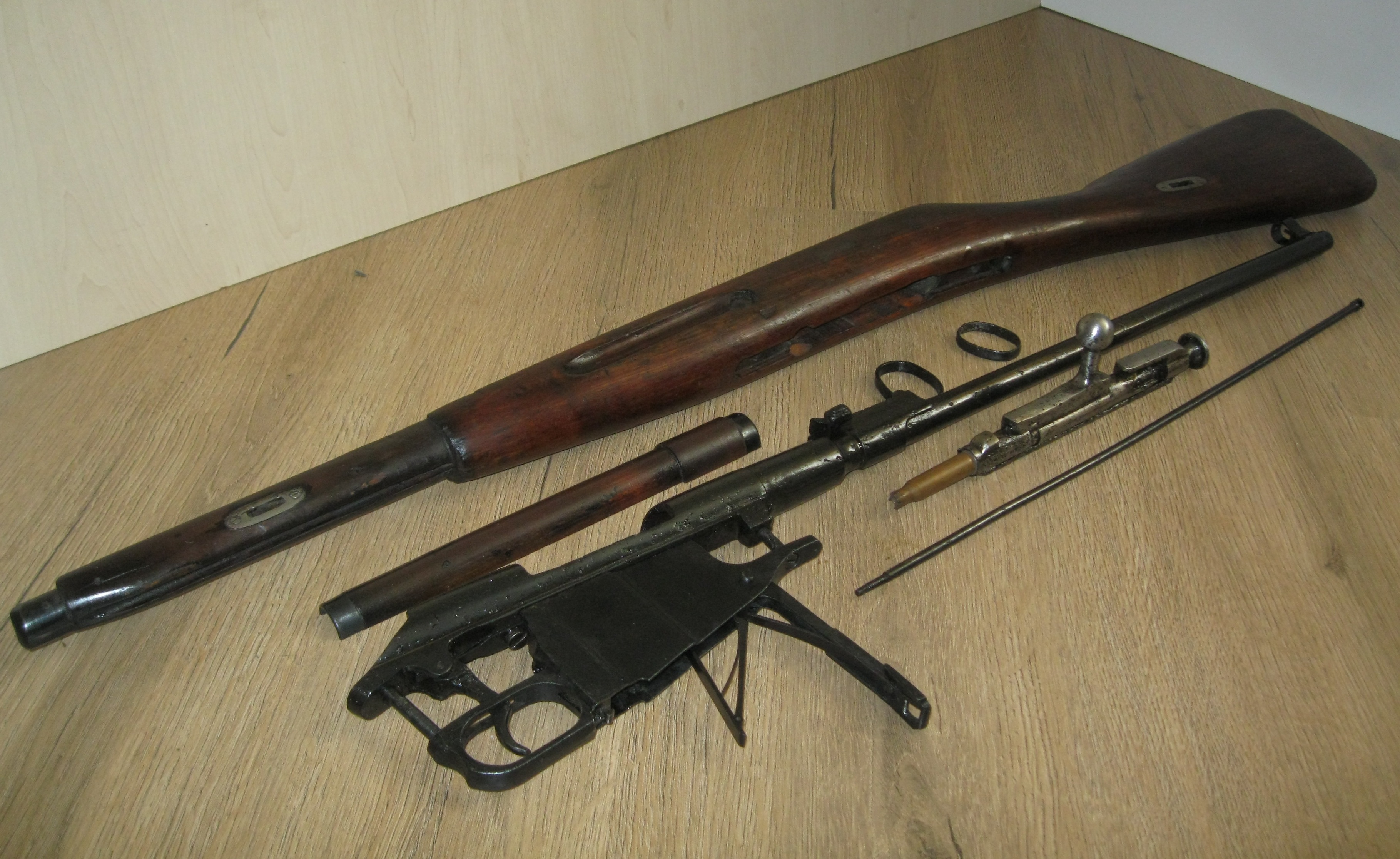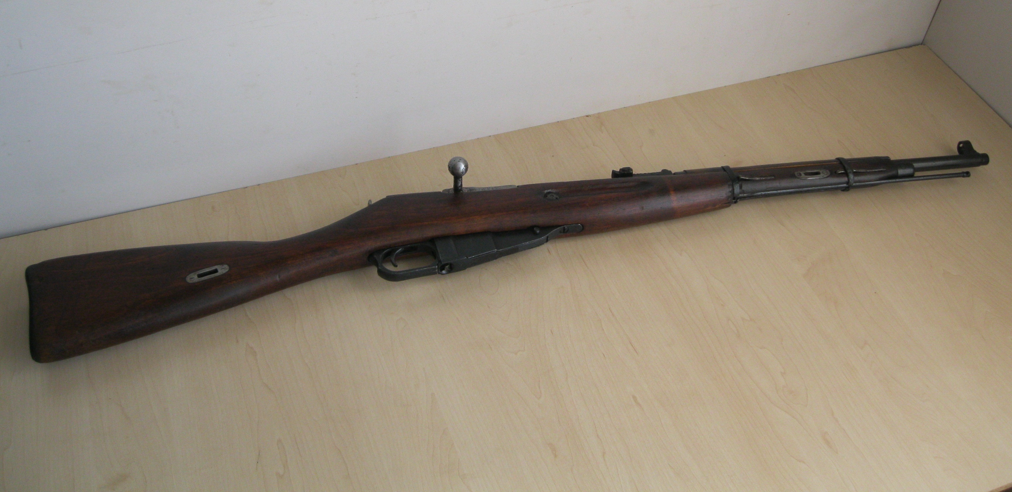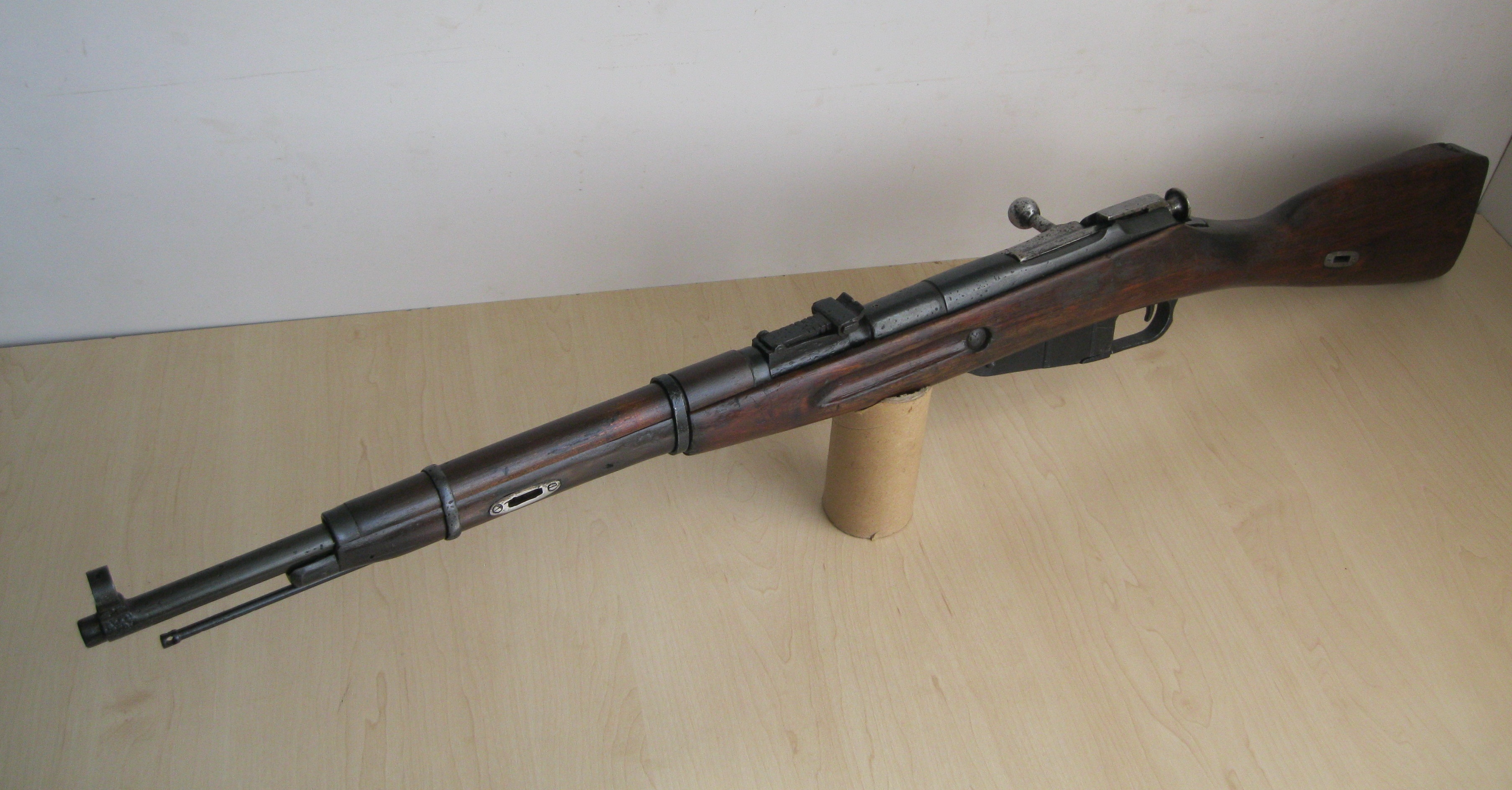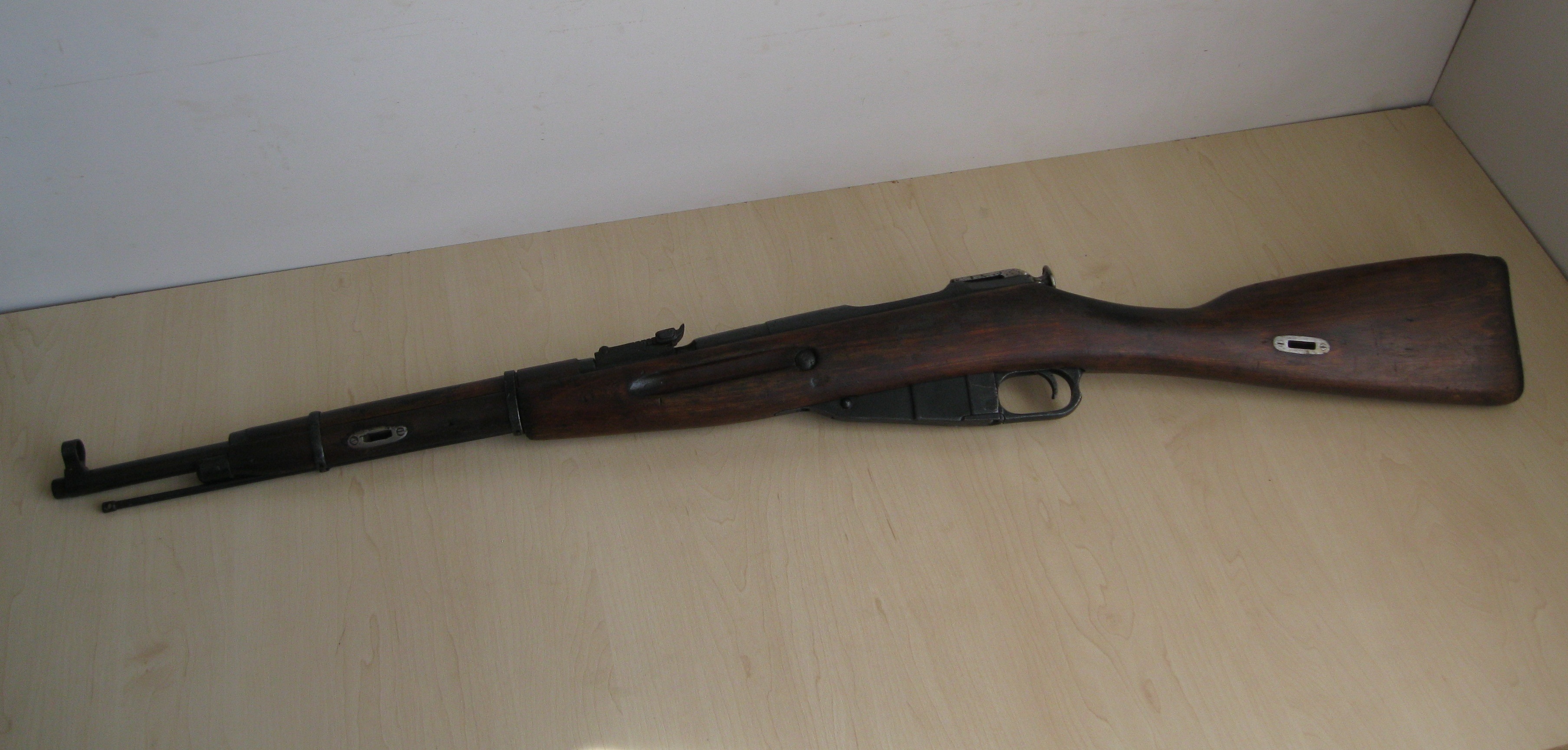 Карабин Мосина обр. 1938 г., СХП. Под холостой патрон 7,62 х 54. Деактив: штифт в патроннике на глубину холостого, штифт у среза ствола, ствол подварен к ствольной коробке. Пружина отсечки - отражателя и магазин - новые. Без документов.