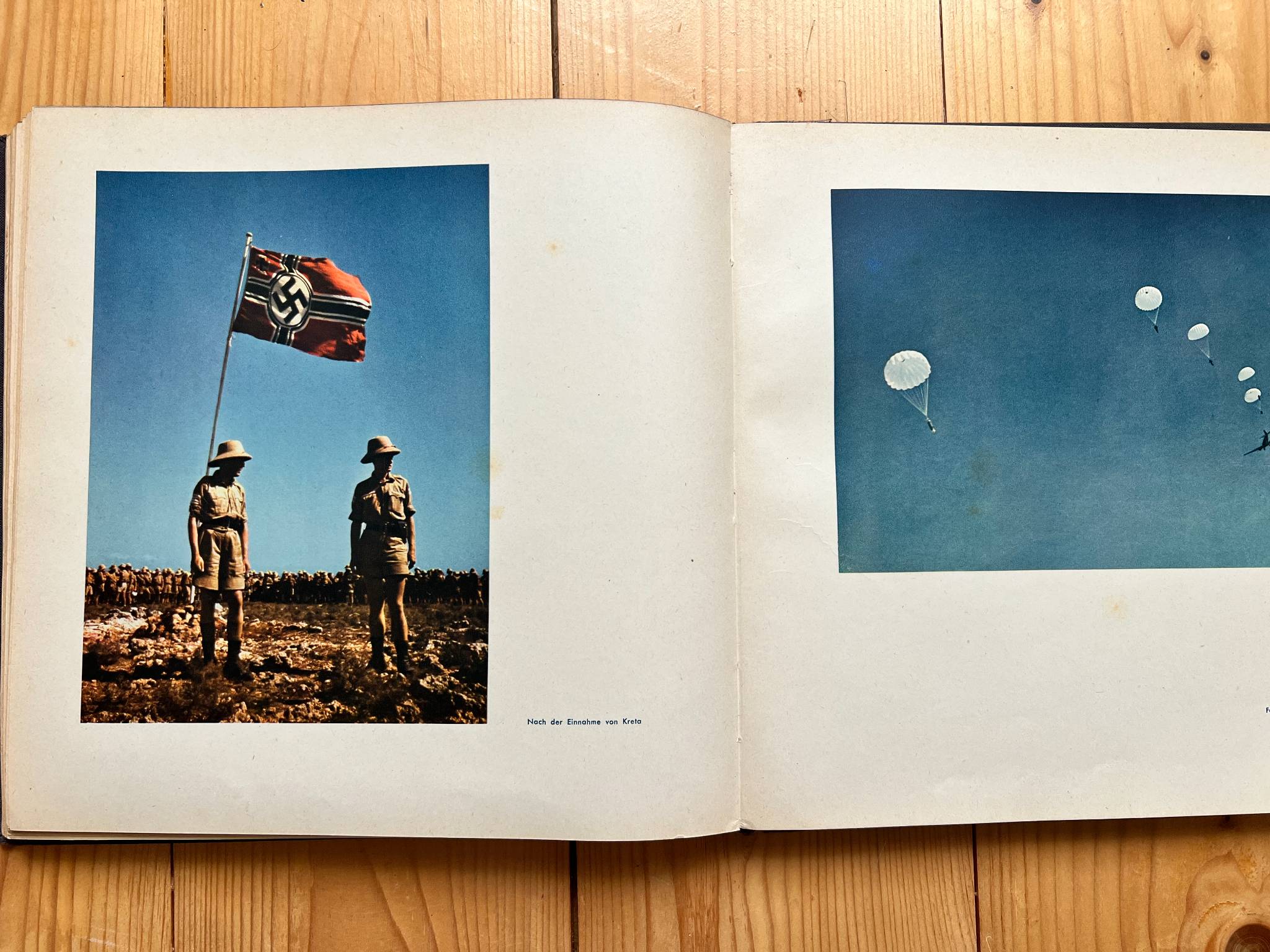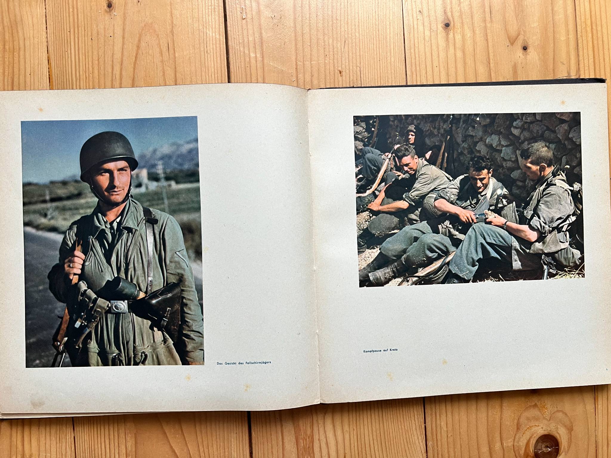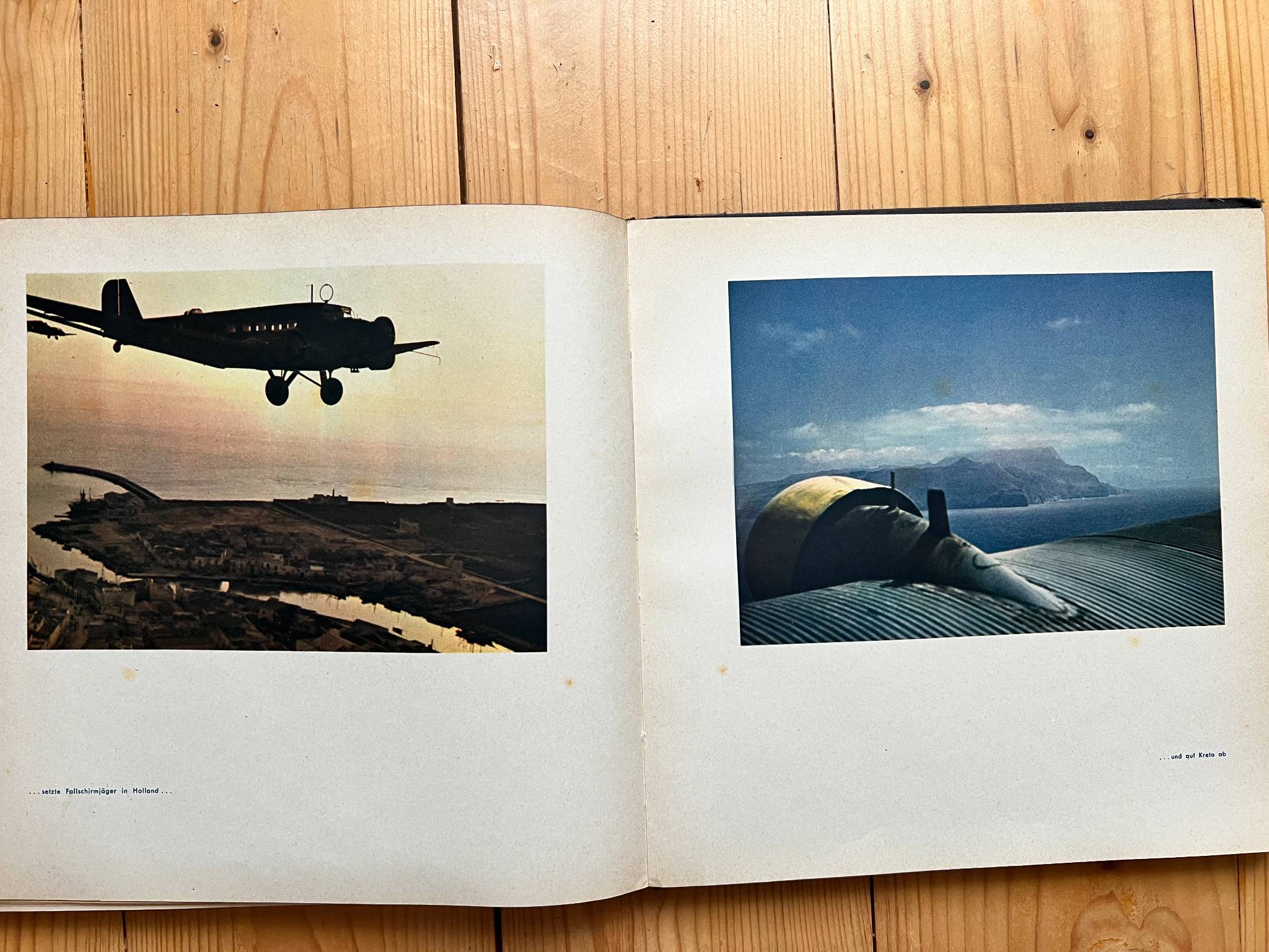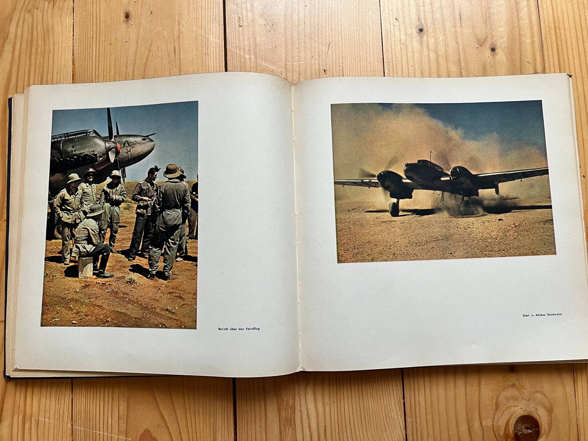 "Fliegende Front" (Літаючий Фронт), Видавництво Verlag "Die Wehrmacht", Berlin. 1942р. Найбільшою цінністю книги є 108 повносторінкових кольорових фотографій, що було рідкістю для воєнних видань того часу . Більшість воєнних книг друкувалися чорно-білими через економію ресурсів під час війни.