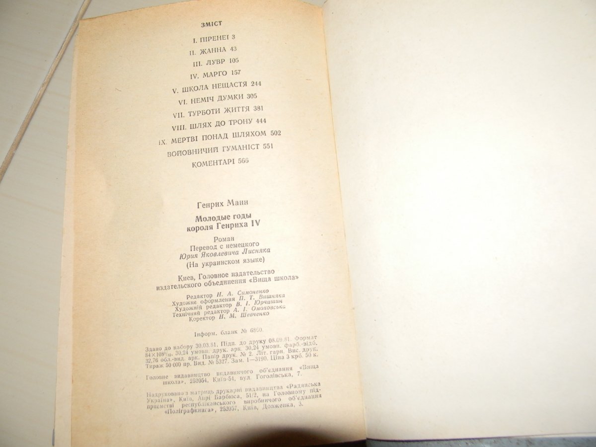книга"молоді літа короля Генріха IV"Генріх Манн.1982р.книга в гарному стані.всі сторінки внаявності.вигляд по фото,574 сторінки.перешлю поштою,оплата пересилки за рахунок покупця. якщо робите декілька покупок на моїй сторінці,обов'язково попереджуйте в листуванні,щоб була змога сформувати однією посилкою.з повагою.