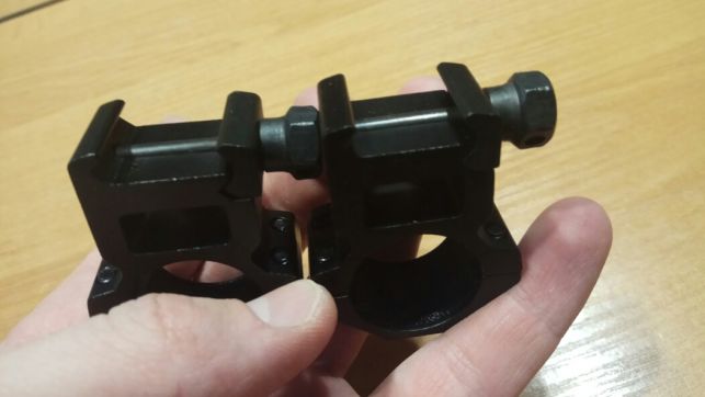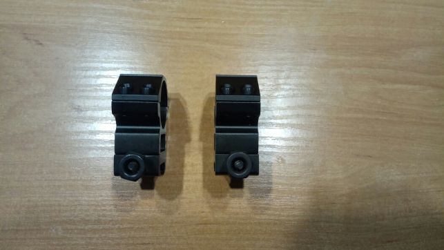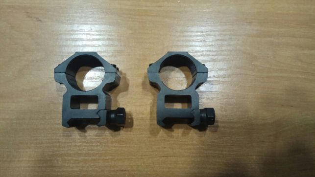 Продам кольца для оптики под трубу Ф25мм, ширина 21мм, высота до центра отверстия 30мм, материал авиационный алюминий