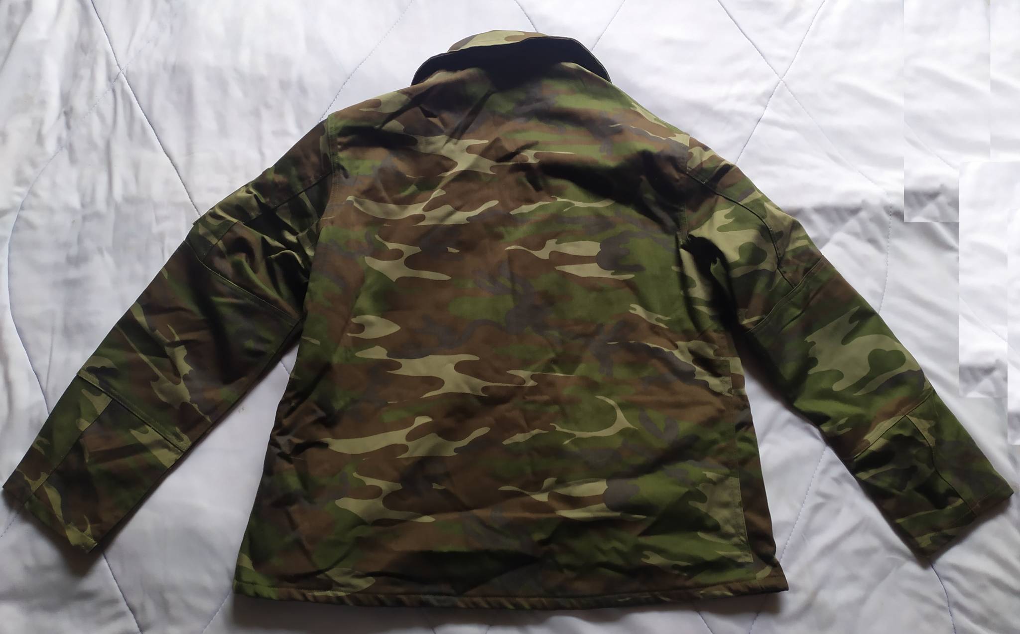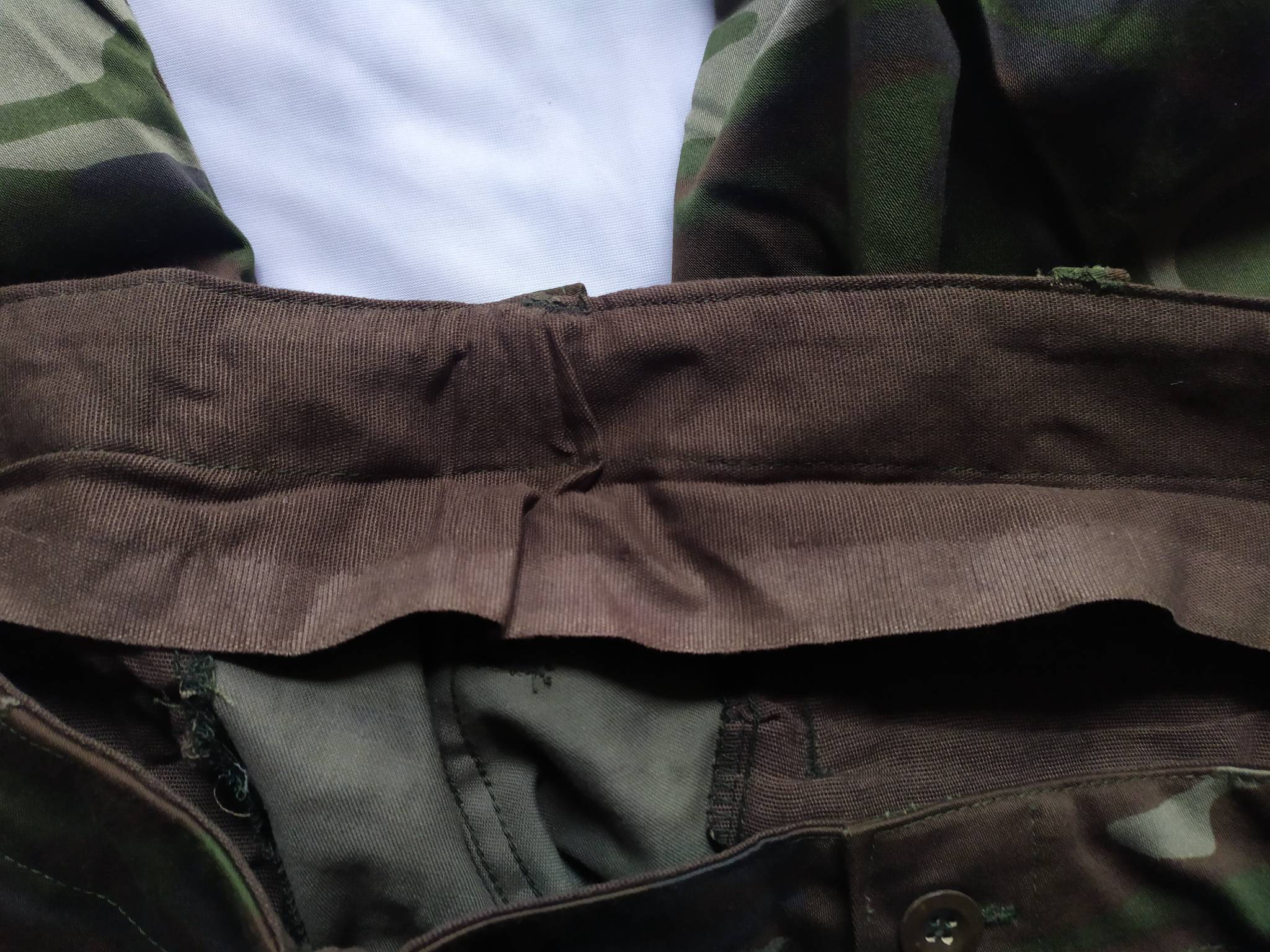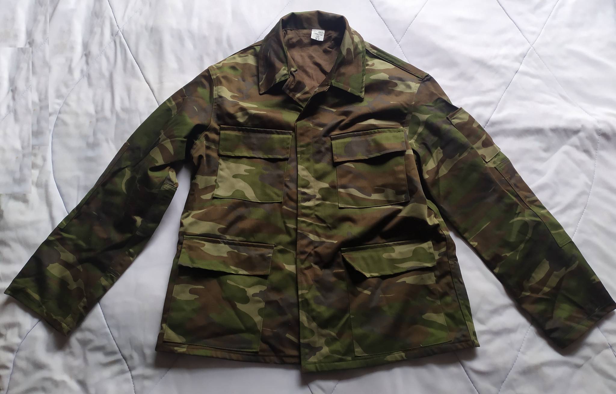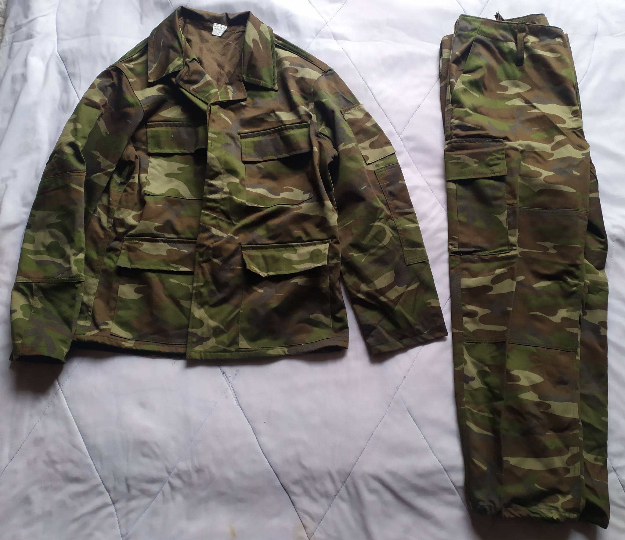 Оригинальный армейский костюм, армия Турции. Выполнен из смесовой ткани средней плотности. Куртка имеет два слоя, штаны в один слой ткани (кроме внутренней окантовки пояса). Костюм выполнен по типу классического BDU (Battle Dress Uniform). Куртка имеет четыре внешних основных кармана, наплечный кармашек, усиление локтевой зоны. Штаны оснащены двумя передними внутренними карманами, двумя набедренными грузовыми и двумя задними; зона коленей усилена вторым слоем ткани. Общее впечатление – крепкий добротный пошив; вариант на весну-осень.