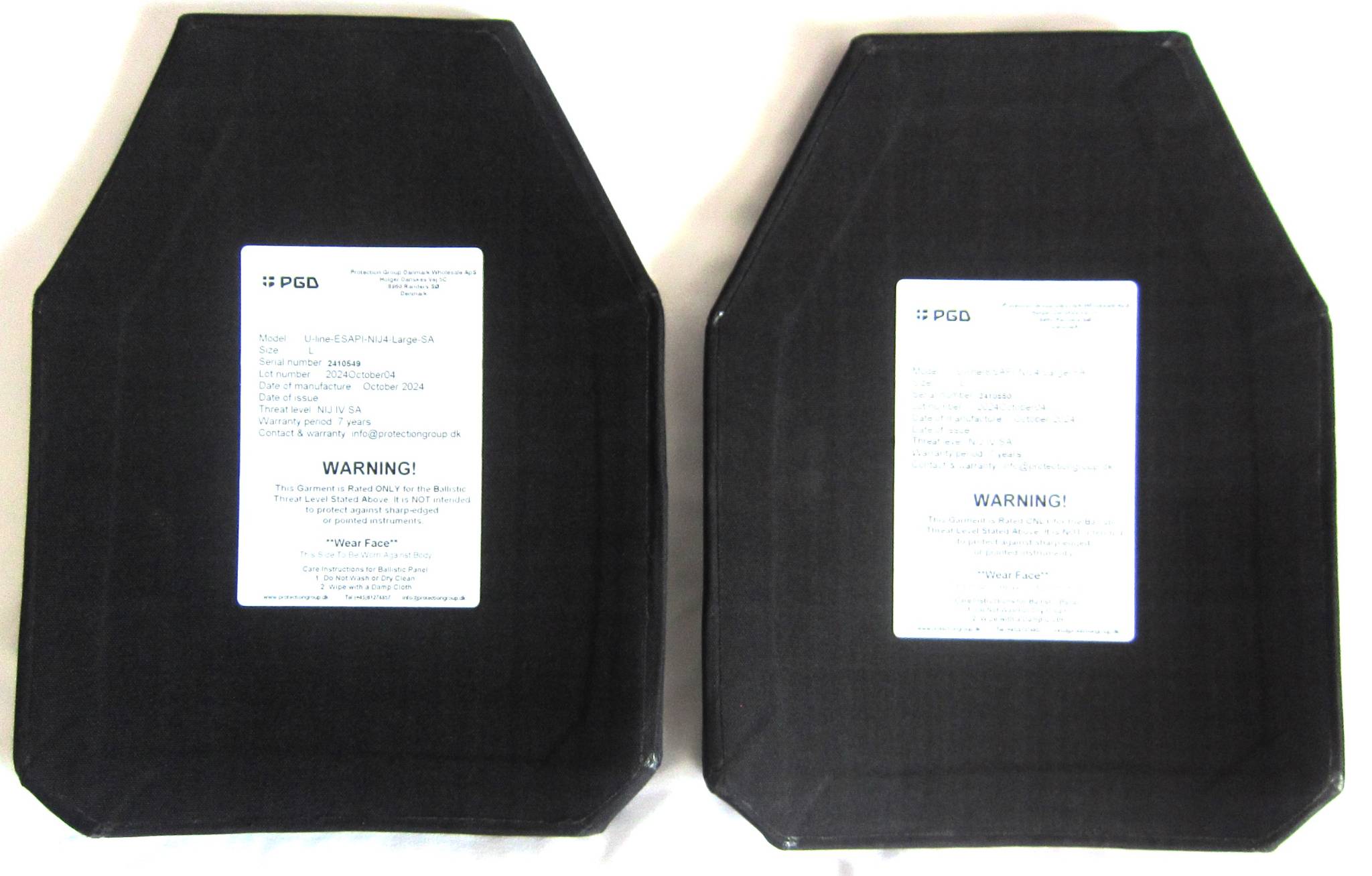 Комплект нових високоякісних броне плит Protection Group Danmark (Дания). Клас захисту максимальний NIJ IV (аналог 6 по ДСТУ). Розмір L 26х34х2,3см, вага плити 3,5кг. Плити stand alone – це означає, що для досягнення максимального класу захисту не потрібно додатково використовувати балістичні пакети. Плити мають анатомічні вигини у двох площинах, завдяки яким відмінно прилягають до тіла та розподіляють навантаження. Виготовлені в Данії. Стан нові.
