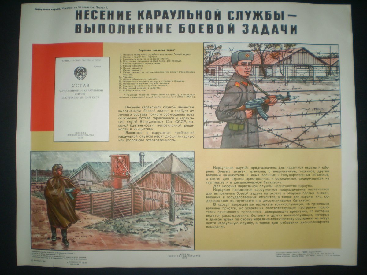 Комплект из 16 плакатов "Караульная служба" 1988 г.