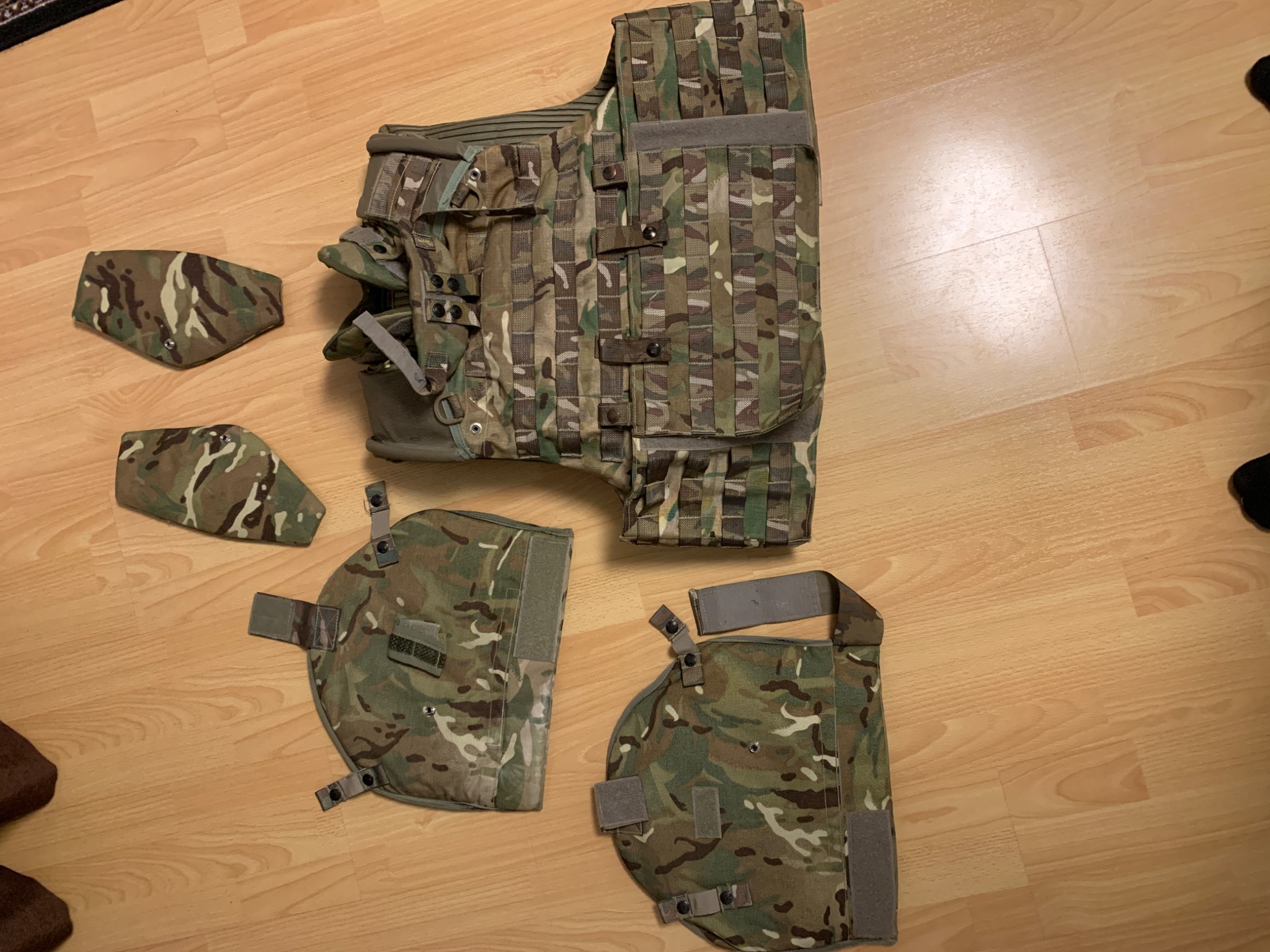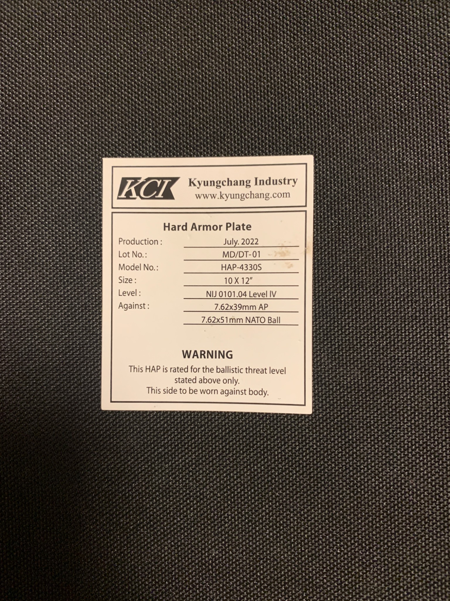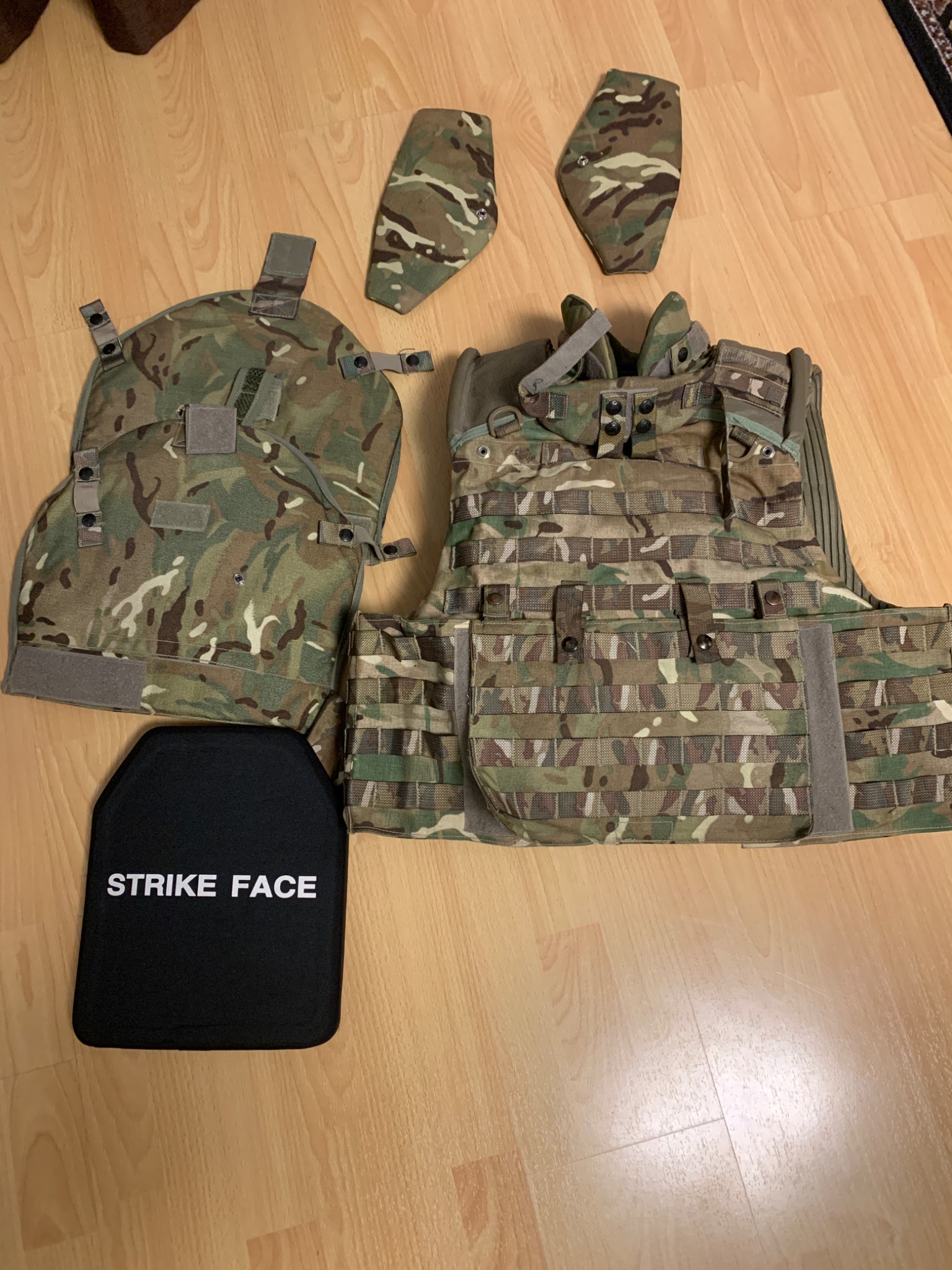 Комплект складається з: жилета, захисту рук, шиї, лопаток. З кевларовими пакетами і бронепластинами IV класу захисту( по ДСТУ 5клас), маса 1пластини становить 3.4 кг. Країна виробник- Південна Корея
