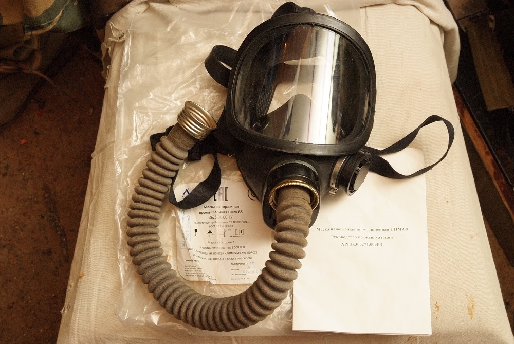 Комплект противогаза из: Маска панорамная промышленная ППМ – 88, 2 размера, новая, фильтрующий баллон универсальный армейский древний, не пользованный. Надеялся проверить легенду, что в маске можно находиться в очках – ерунда, через дужки пропускает. Цена 550 грн. комплект Shunevich65@gmail.com Тел. 0674844292, 0936462216.
