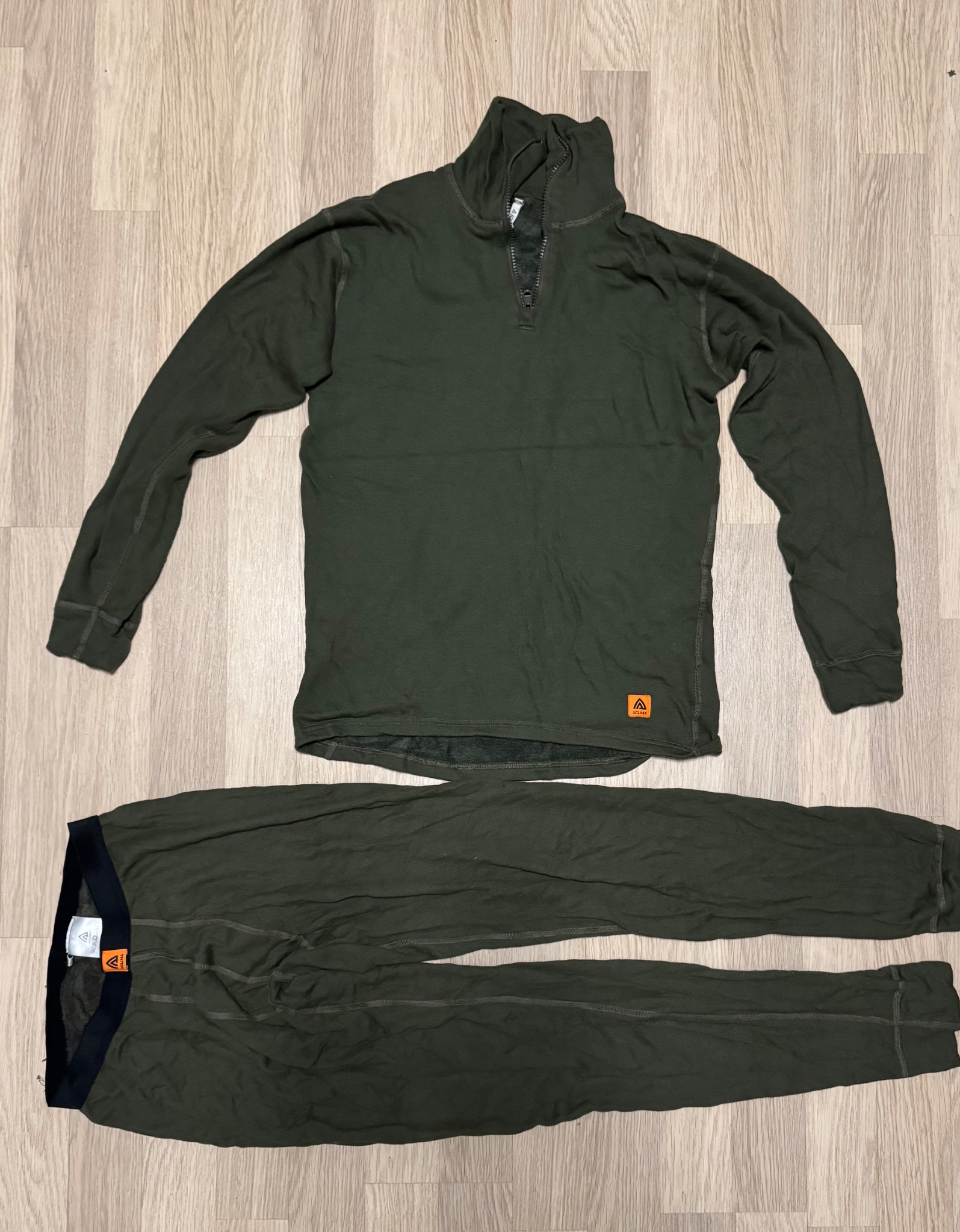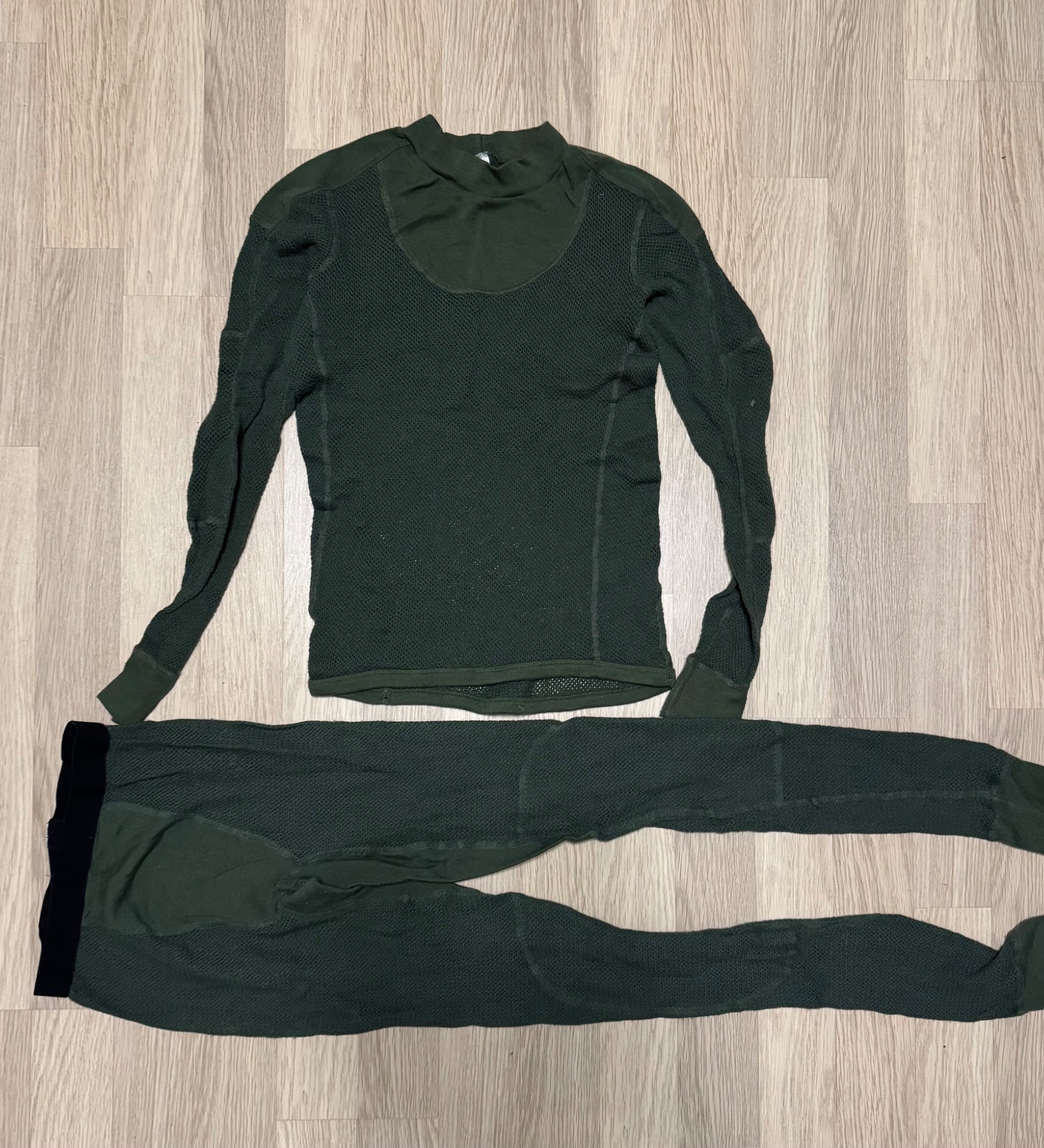 В лоті термобілизна Aclima складається з 2х шарів. 1й шар (по 2 шт. верх і низ) натільна білизна сітчаста 2й шар (по 2 шт. верх і низ) утеплювач. Вдягав лише раз. Випрана один раз. Комплект виданий військовим в Норвегії, тому і призначені для холодного клімату. Якщо подивитесь на цінники цього бренду то зрозумієте що тут велика знижка. Розмір стандартний М (я 187/80 підійшла ідеально).