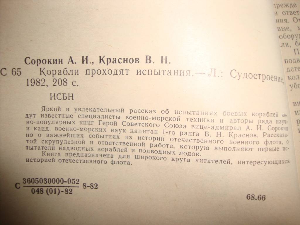 Яркий и увлекательный рассказ об испытаниях боевых кораблей ведут известные специалисты военно-морской техники и авторы ряда научно-популярных книг Герой Советского Союза вице-адмирал А.И.Сорокин и канд. военно-морских наук капитан 1-го ранга В.Н.Краснов. Рассказано о важнейших событиях из истории отечественного военного флота, о той скрупулезной и ответственной работе, которую выполняют первые испытатели надводных кораблей и подводных лодок. Книга предназначена для широкого круга читателей, интересующихся историей флота