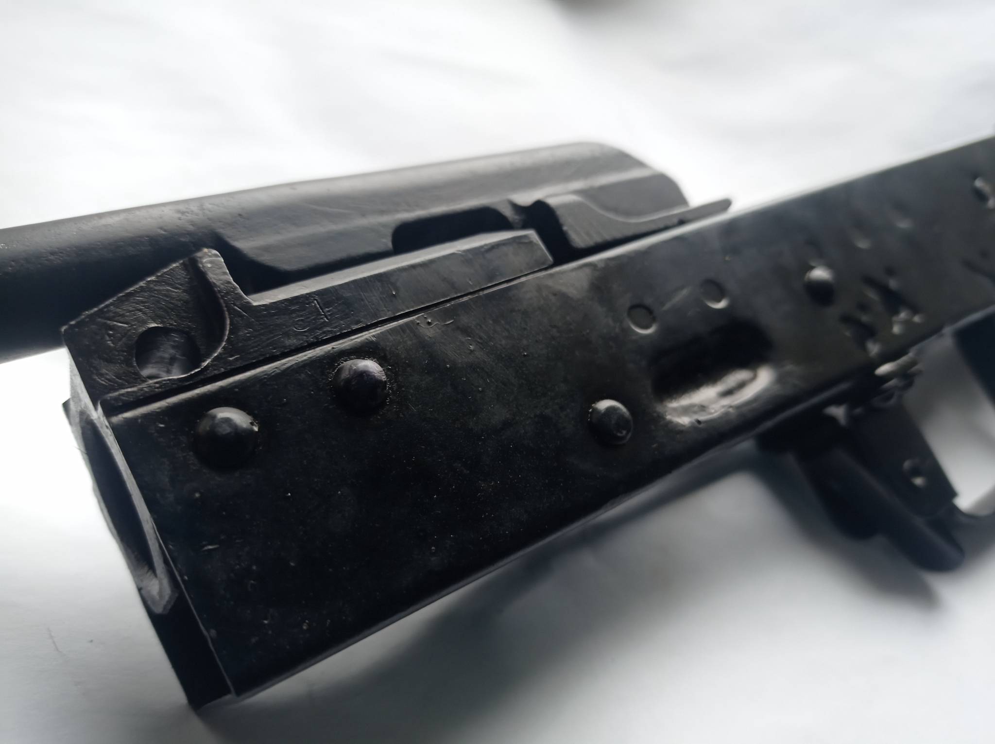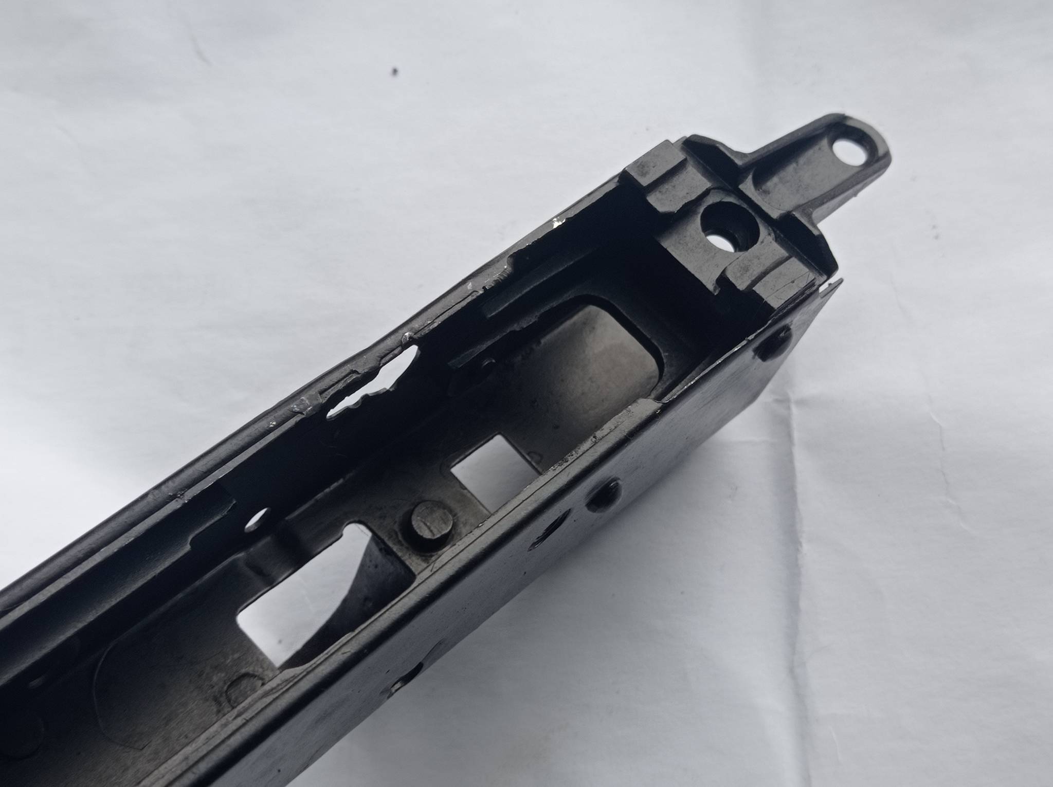 Коробка АК 74,не горіла,пружина магазину туга,як нова. Були осколкові ураження в нижній частині кріплення магазину та в районі спуска з перемикачем. Все виправлено та перефарбовано.геометрія в нормі,затворна рама стає,ходить. На макет чи під схп .Номер спиляно.В лот входить тільки сама коробка.