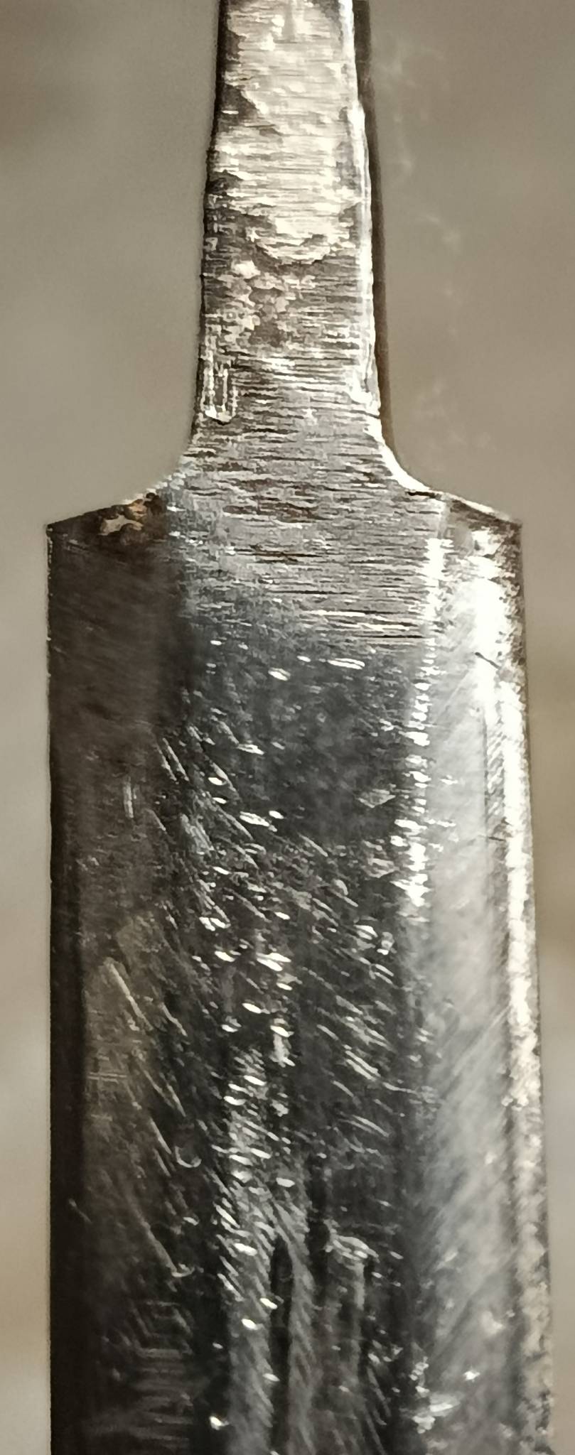 Лезвие имело покрытие когда то, видно неумело точили или ещё как то сухари. Клейма не видно.
