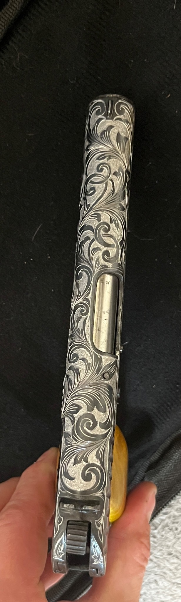 Приветствую камрады . Предложу вашему вниманию уникальный ммг ТТ ручной гравировки . Исходником для сего произведения искусства была чердачная находка , очень бодрого сохрана . Макет был проверен на работоспособность ( работает как швейцарские часы ) , после чего оригинальная труба была отдана первоначальному владельцу данного девайса. Потому вопросы о наличии оригинального ствола задавать бессмысленно .