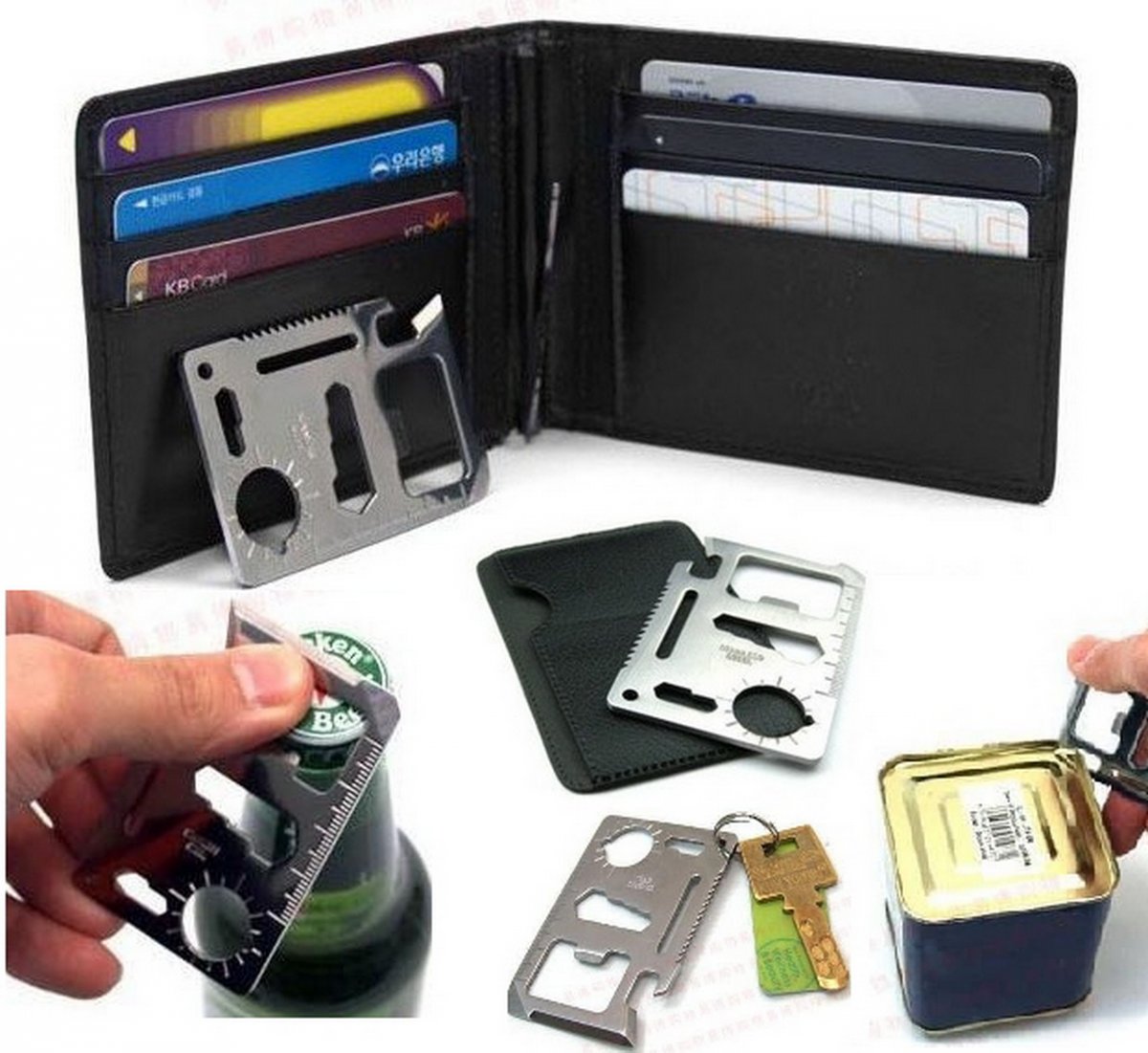 Кредитка-Мультитул. Крепкий тяжелый металл приличной толщины. Отлично помещается в бумажник в отделение для кредитных карт или визиток.