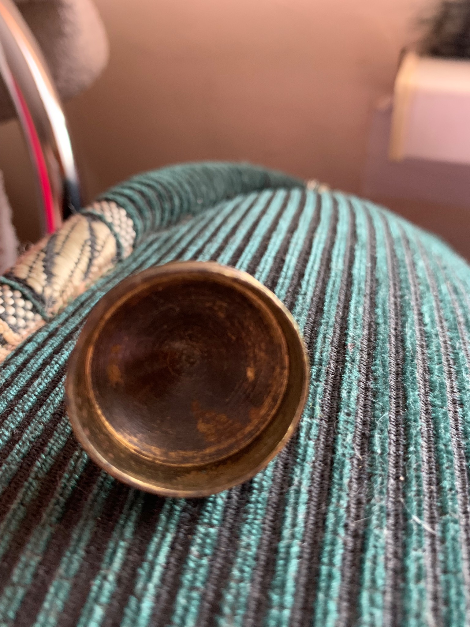 Латунна кришка в хорошому стані. В деяких місцях проглядається позолота. Можливо від люльки або чорнильниці (точно не знаю). Не штамповка