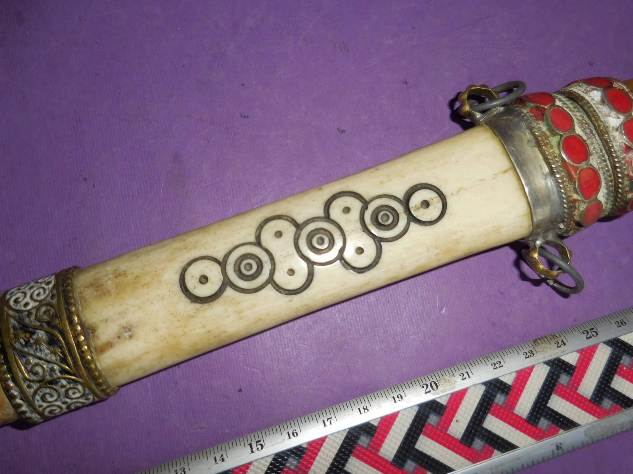 Рукоять и ножны - рог, двух цветов.