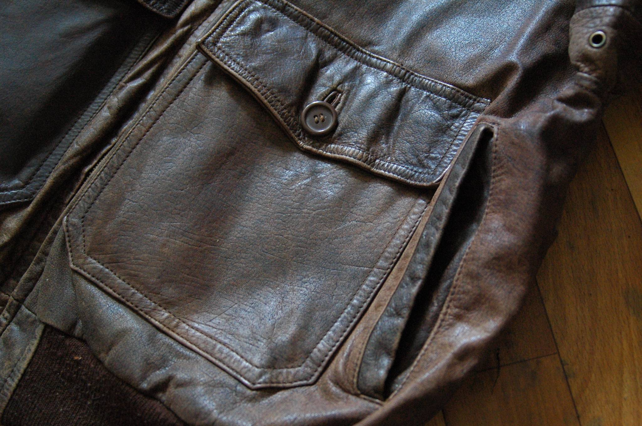 Куртка бомбер шкіряний, з хутряним овчиним коміром, хутро неушкоджене - міль залишилася голодною