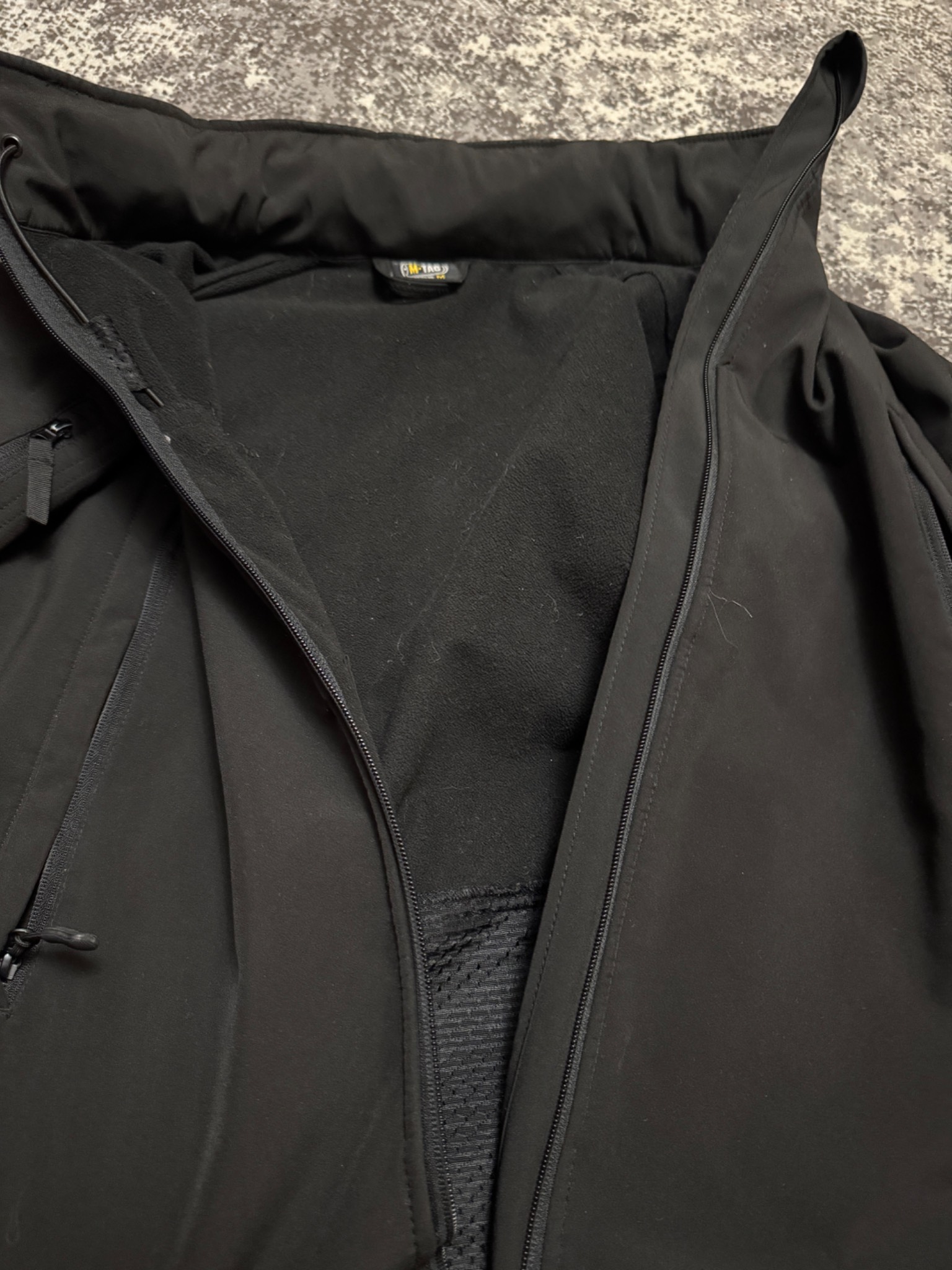 M-TAC куртка Soft Shell виготовлена з поміжслойної поліуретанової мембрани, яка захищає від негоди. Усередині тонкий фліс. Важливими властивостями виробів з софтшелла є їх невелика вага і комбінація двох шарів одягу в одному. Софтшелл об'єднує в собі зовнішній шар (для захисту від вітру і негоди) і ізолюючий внутрішній шар. Поверхня не тільки захищає від вологи, але так само і відхиляє бруд. Крім того, м'який і обтічний матеріал надає більше комфорту при носінні. Передня блискавка виготовлена компанією YKK, вона якісна і виконує свою функцію без будь-яких видимих проблем.