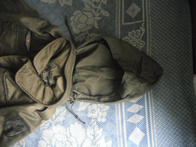 Б/У, есть маленькое, не сквозное отверстие на рукаве ( возле пуговицы ) потезтости, дефект ткани возле нашивки над велко лентой, зацеп на рукове, мелкие пятна на капюшоне.
