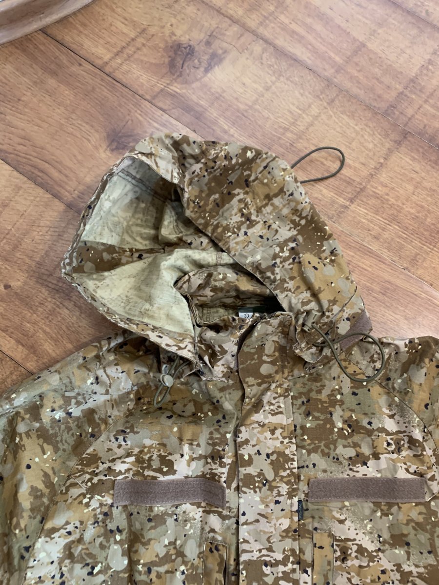 С капюшоном, который модно отстегнуть или спрятать в ворот.