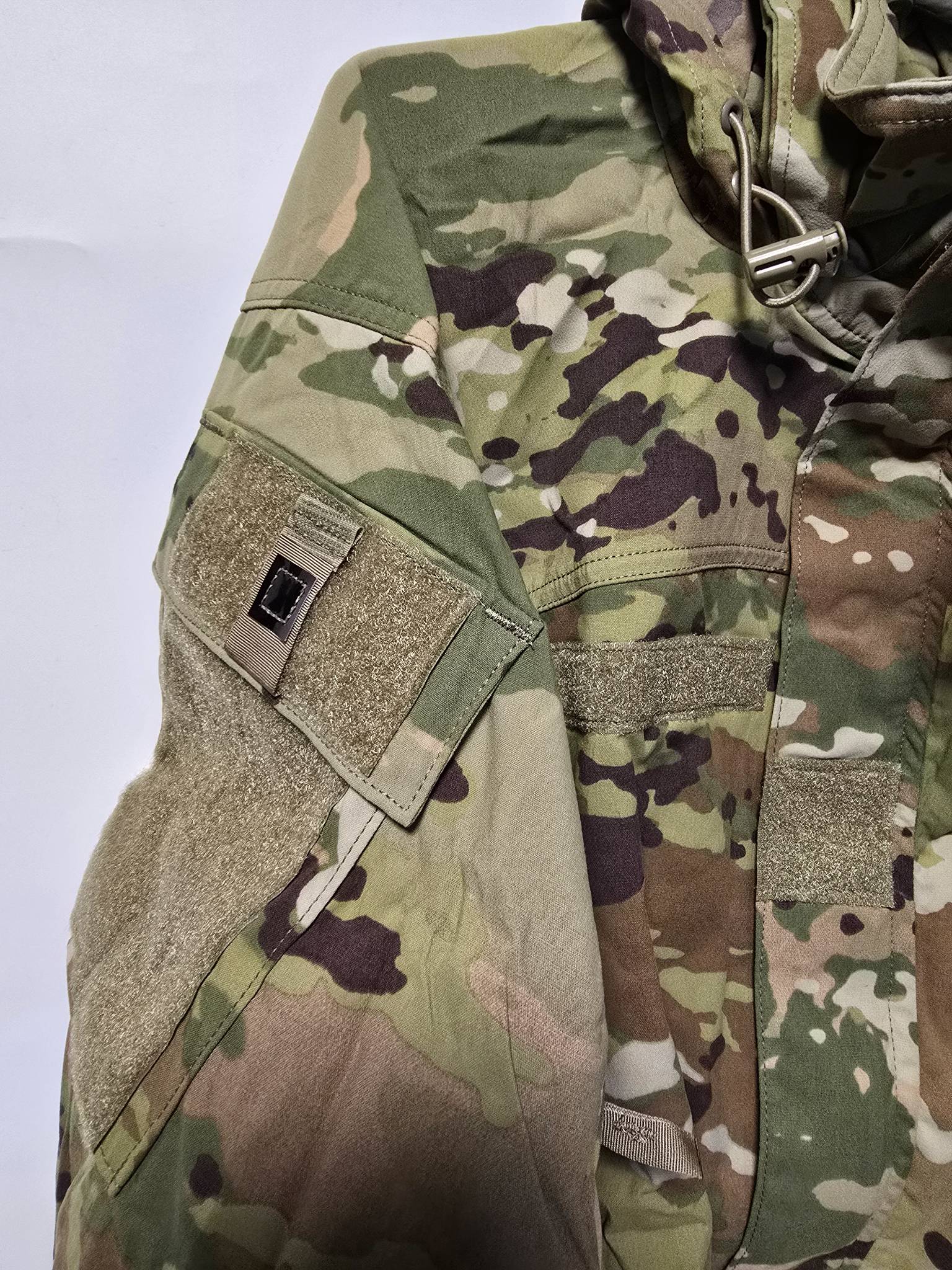 Куртка оснащена велкро-панелями для грудях і плечах для розміщення знаків розрізнення або морал-патчів.