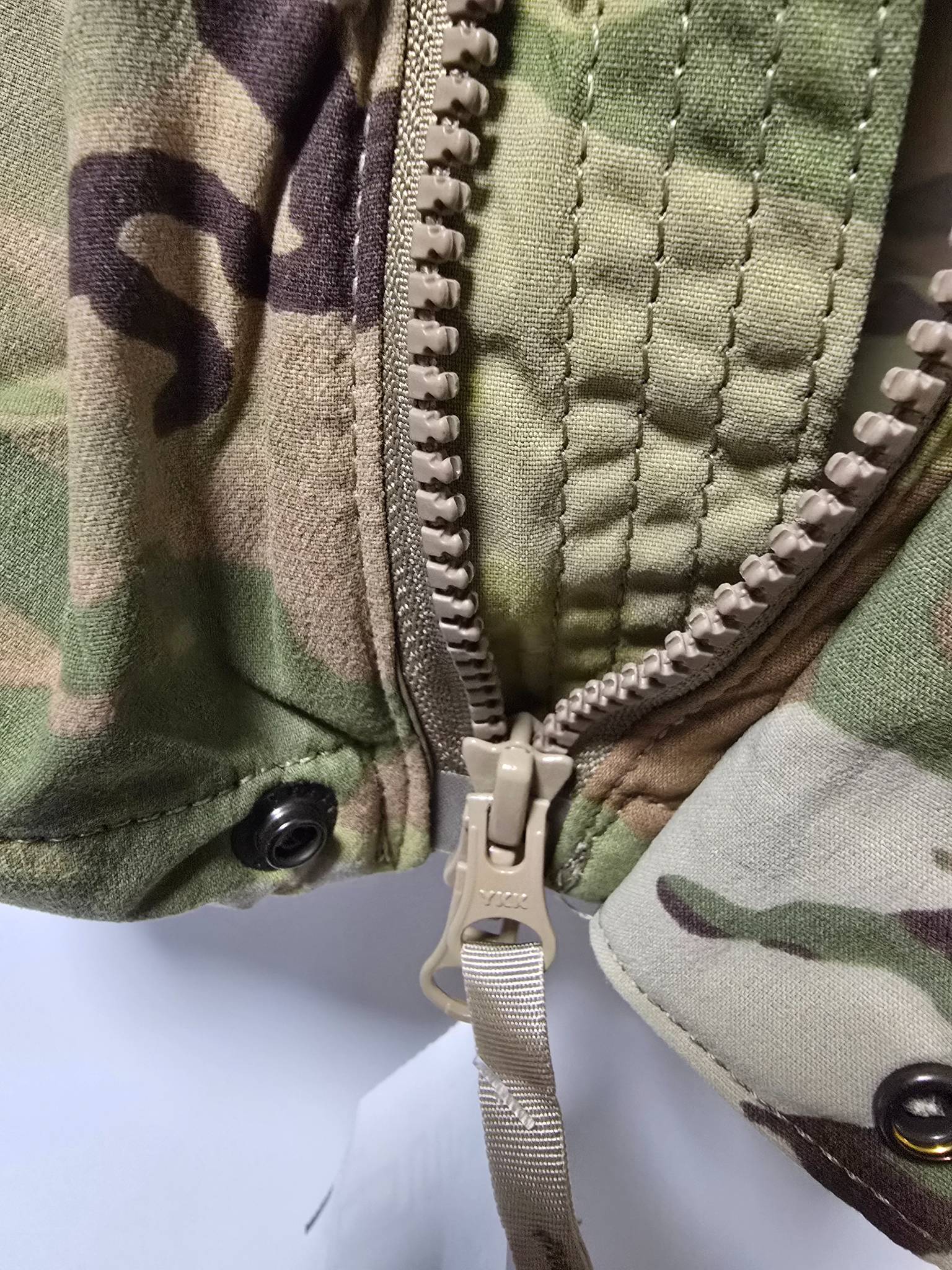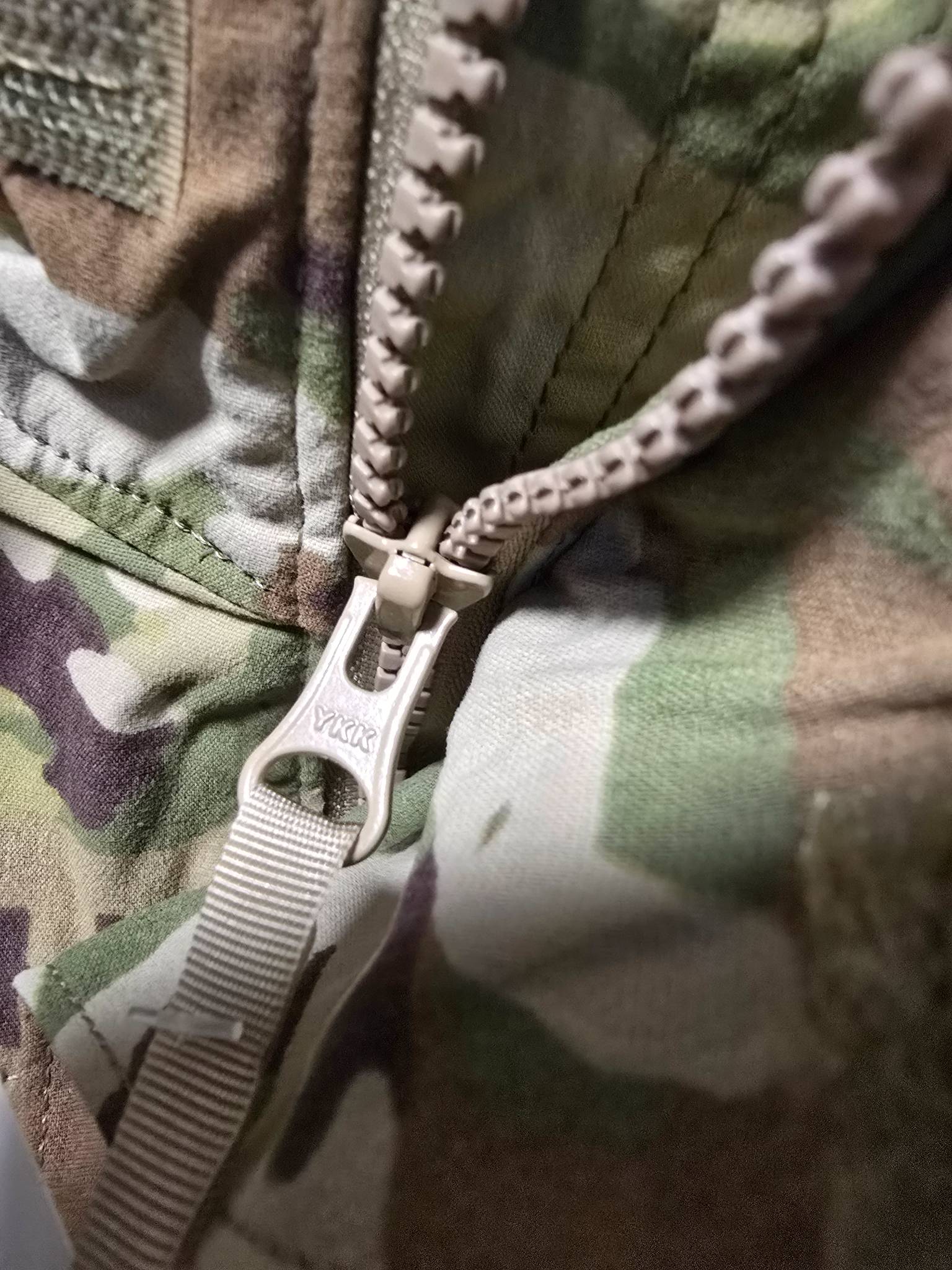 Для запобігання проникненню води та пилу під куртку, центральна блискавка прикрита планкою, що застібається липучками. Сама ж блискавка має два бігунки — знизу та зверху. Завдяки цьому куртку можна розстібати знизу вверх, отримуючи доступ до кишень на нижніх шарах одягу або розвантажувальних систем.