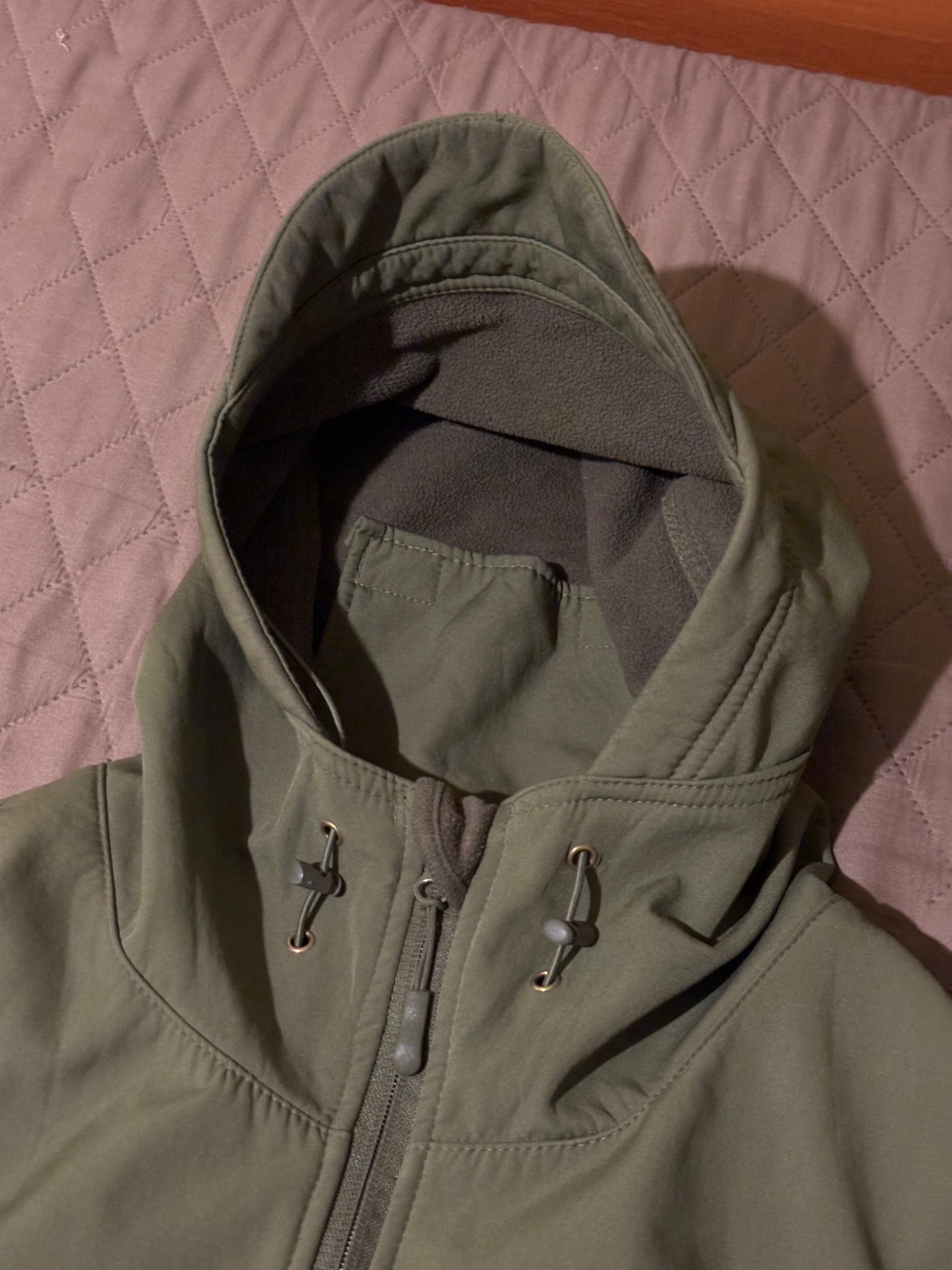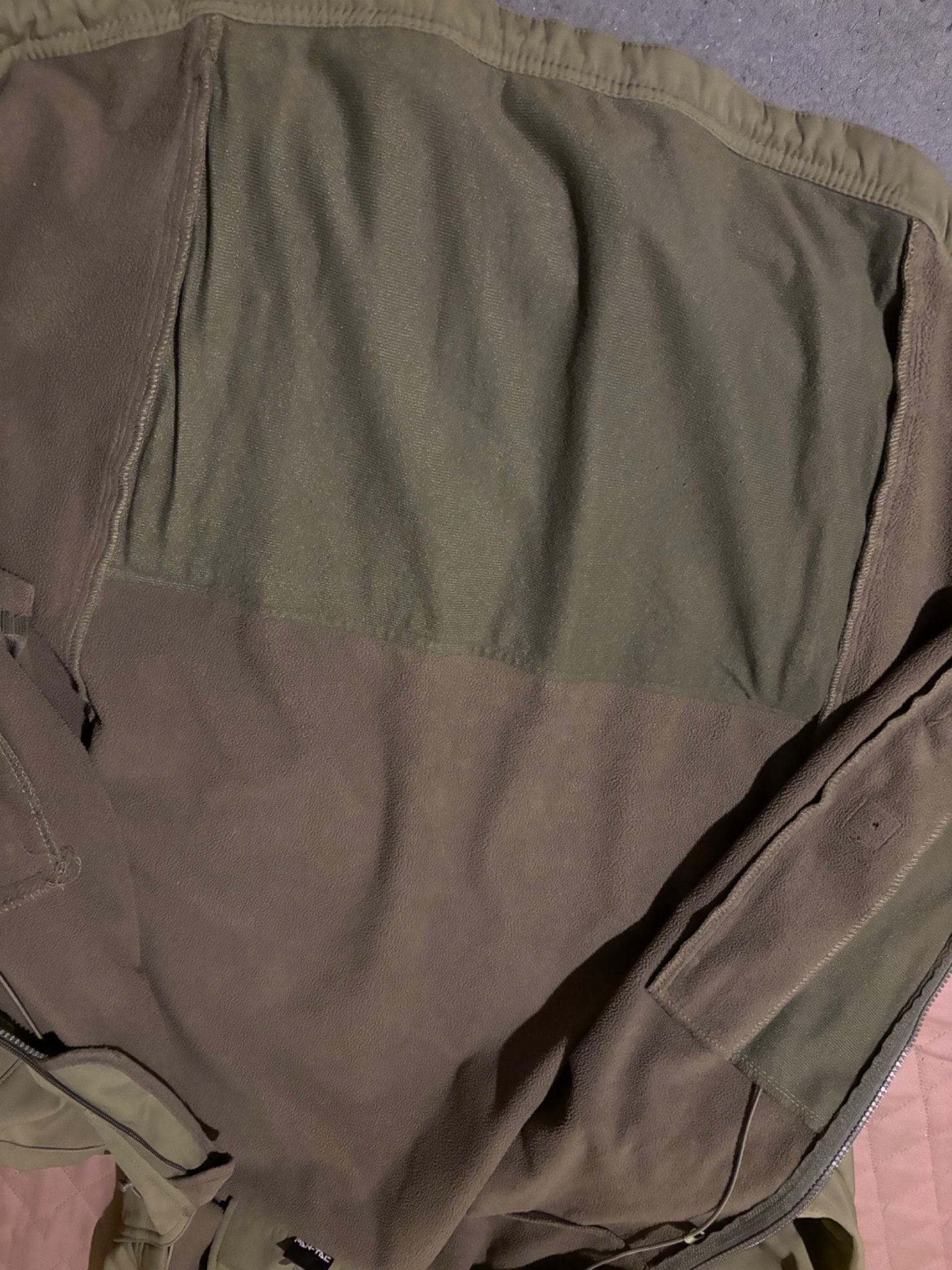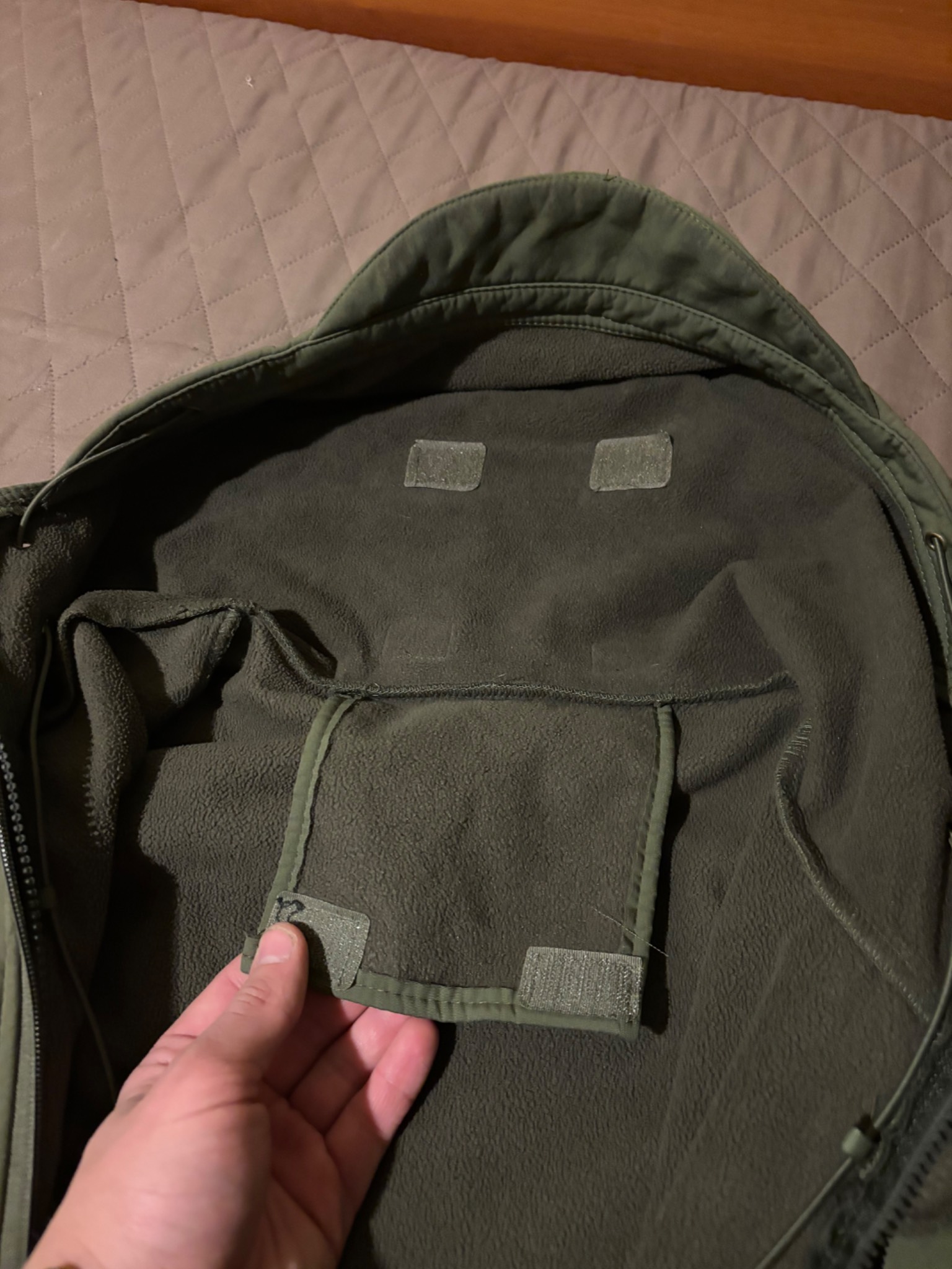 Вітаю, куртка розміру XL на фото є заміри по зросту, матеріал softshell в середині фліс, всі бігунки працюють, купа карманів, утяжка на низу по талії, утяжка на капюшоні, велкрл на плечах по бокам, без порізів, надривів і тд, дивіться ініші мої лоти багато цікавого по тематиці