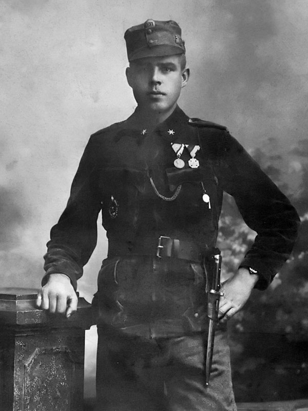 Булавка с мельхиоровыми пулями манлихера (импровизированный знак на полевое кепи) - частое явление в австро-венгерских войсках http://ah.milua.org/pamyatnye-znachki . Перо совы (тоже не редкое явление в австро-венгерских войсках) - бонусом