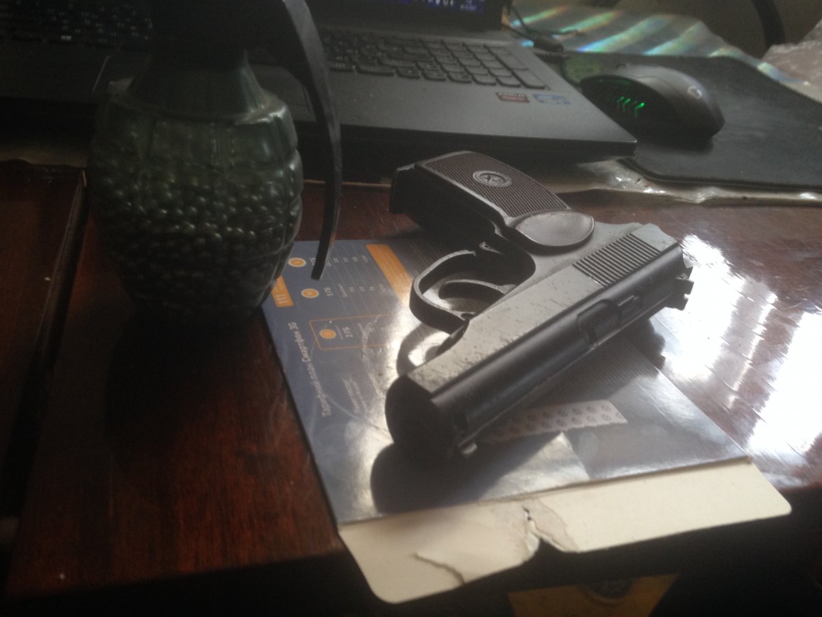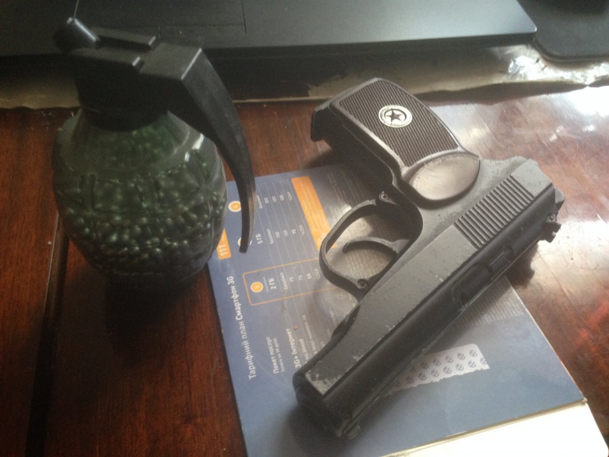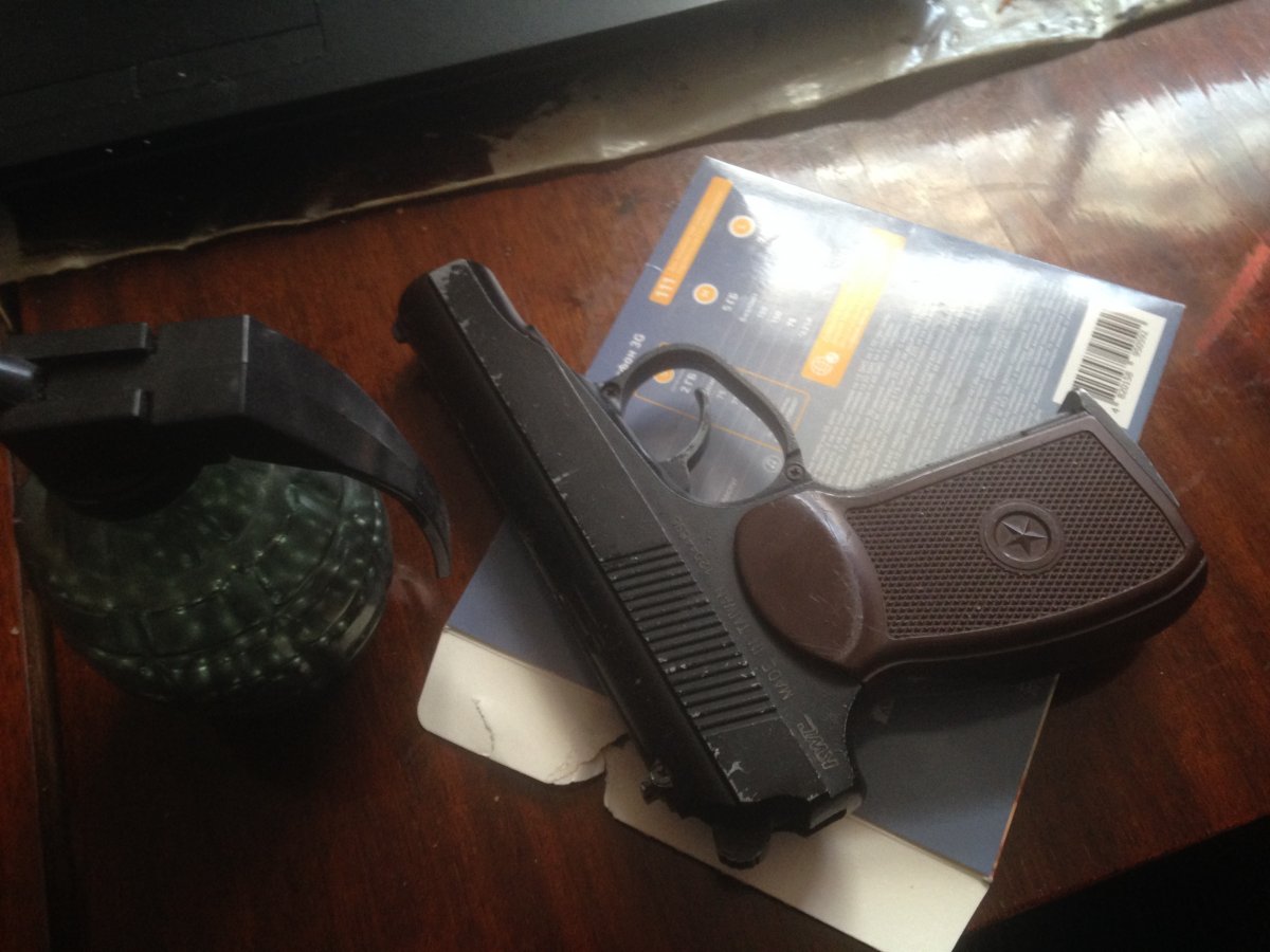 пистолет пневматический,купленный в розетке,документов не могу найти,настрел небольшой,в подарок шарики примерно 1700 шт. и баллон...