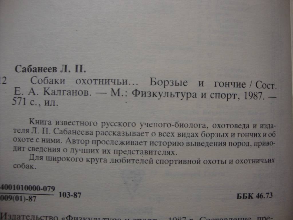 Л.П.Сабанеев "Собаки охотничьи... Борзые и гончие"