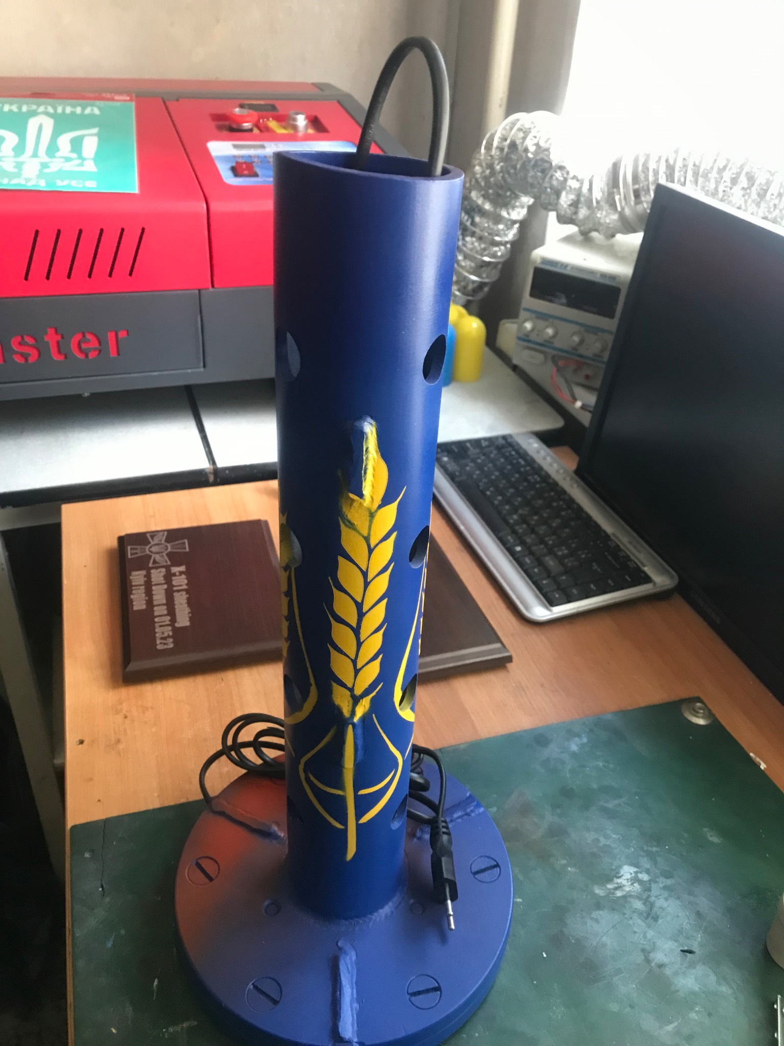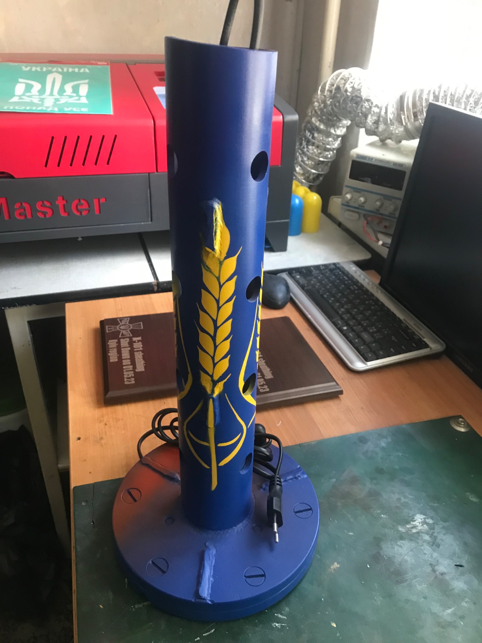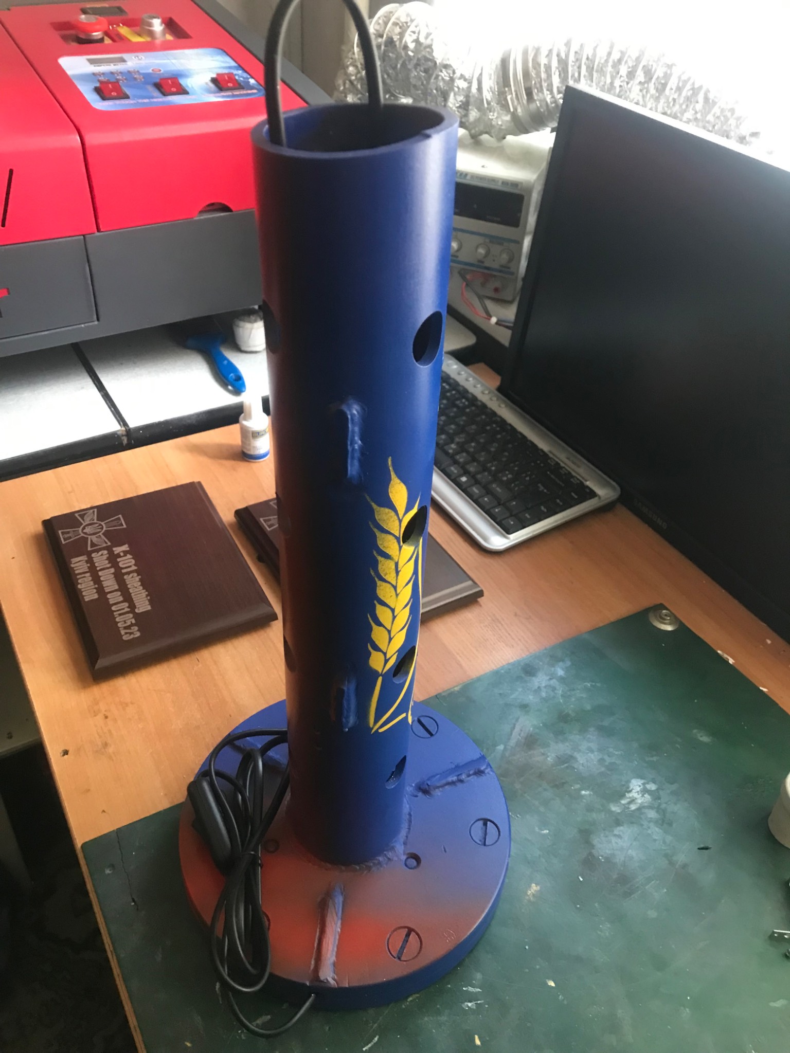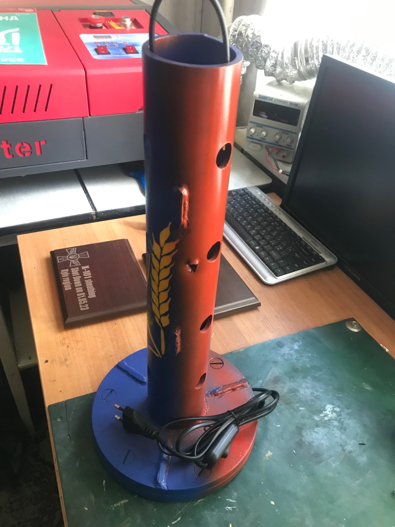 Лампа выполнена с части орковской ракеты системы «Ураган» которой обстреливали раене Бахмута.