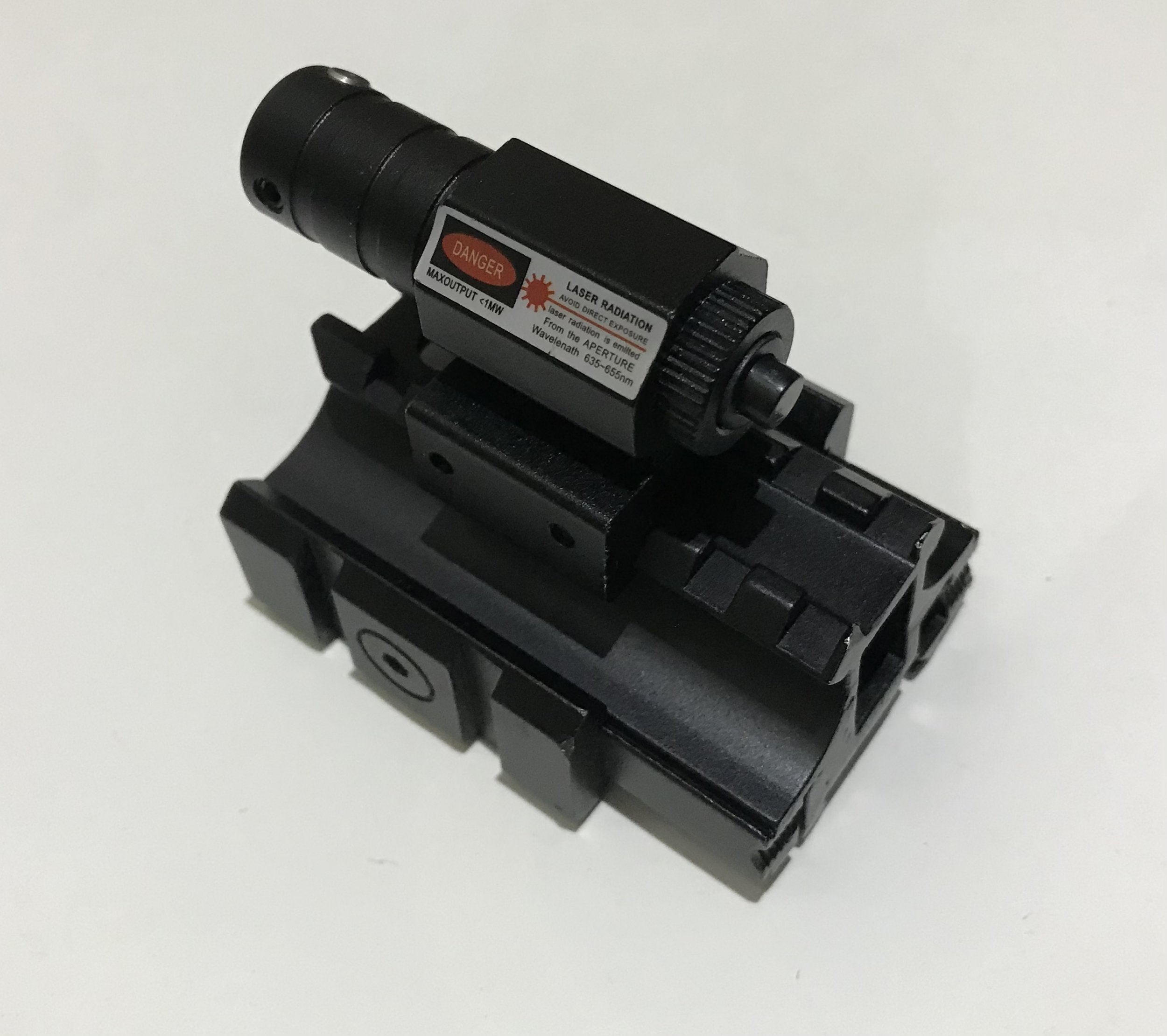 Лазерный прицел, крепится на планку вивера, дальность 200м.-железно, новый, работает от трёх элементов типа Lr44.