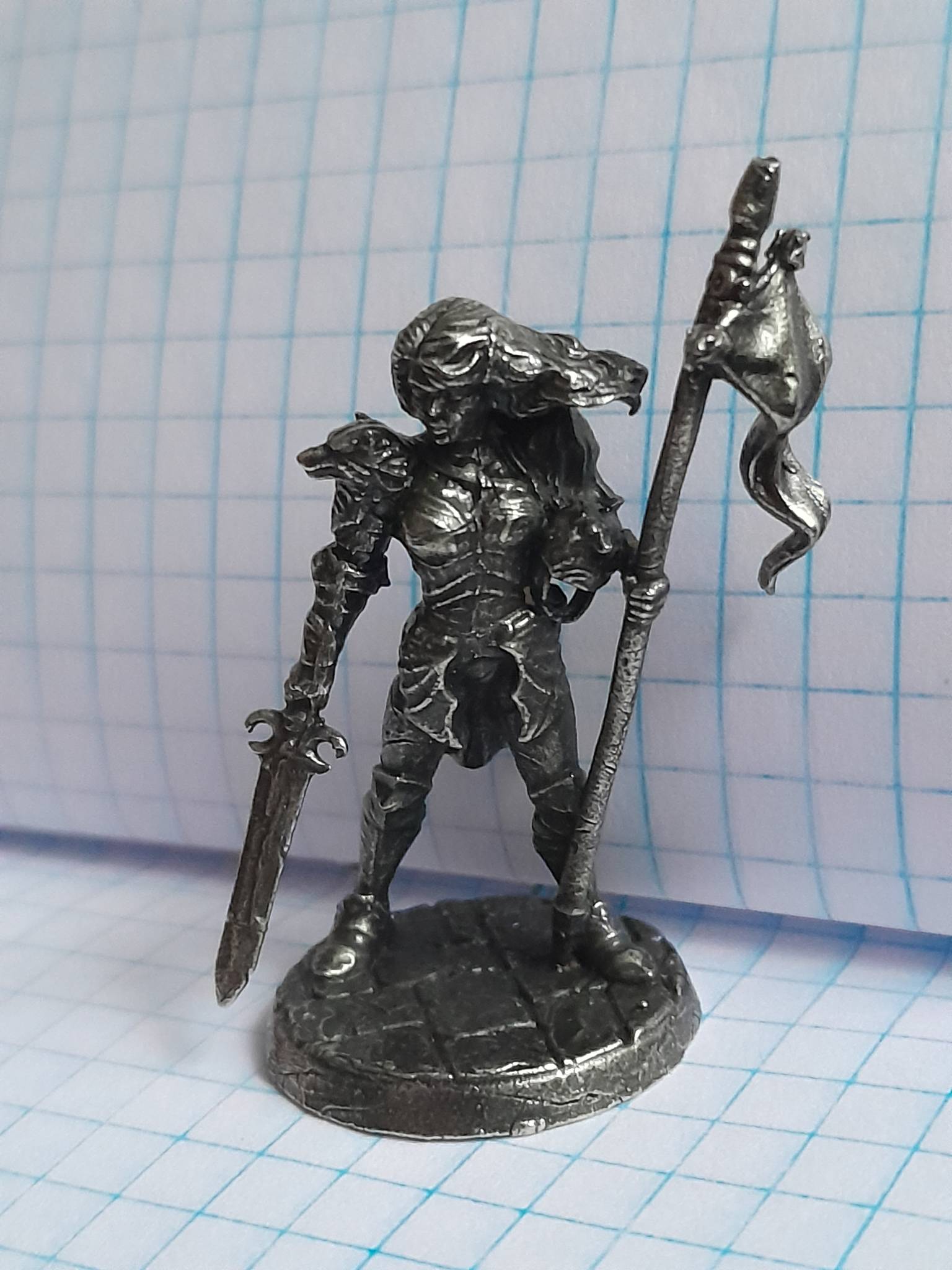 Представляємо вам елегантну мініатюру Лицарки зі стягом із сплаву Нейзільбер! Цей вражаючий солдатик вагою 23 грама висотою 47 мм та шириною 25 мм вражає своєю деталізацією та майстерністю. Виготовлений з високоякісного матеріалу, він стане чудовим елементом вашої колекції або чудовим подарунком для шанувальників історії та мистецтва.
