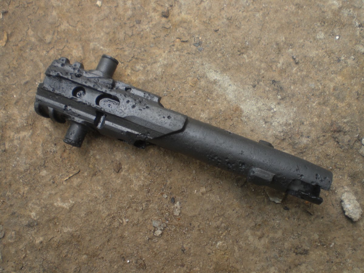 " пустой". остался только отражатель личины. Разработан, штифт не выбивался. Край чуть погнут ( последнее фото)