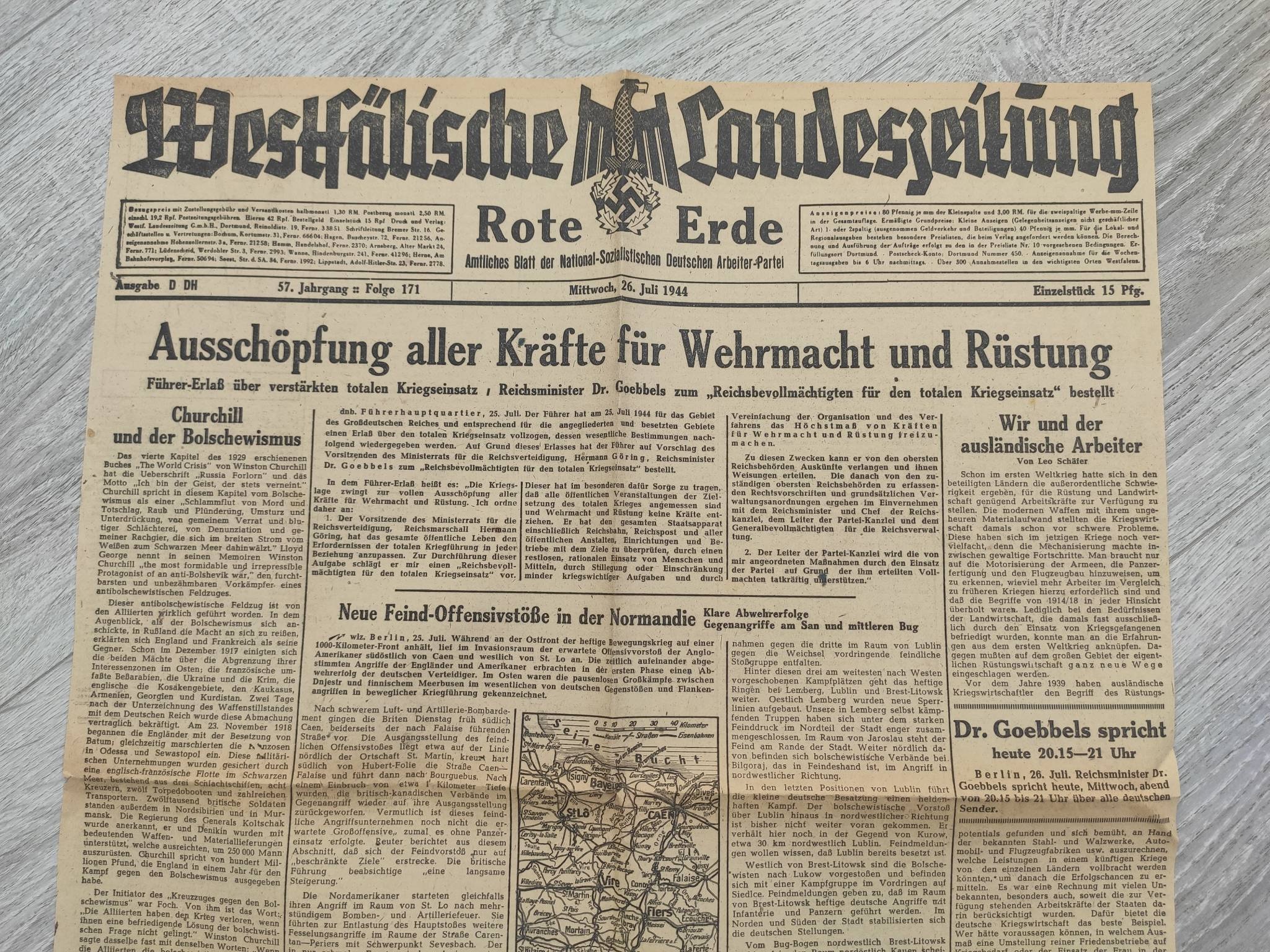 Лист газети "Westfalische Landeszeitung". 3 Рейх.
