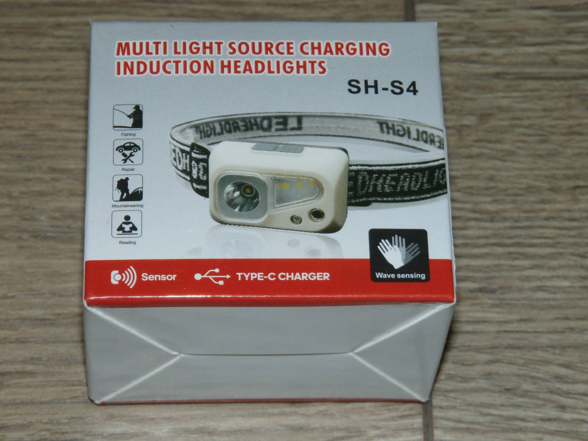 Ліхтар налобний SH-S4-XPE+3SMD(white+red), Motion Sensor, вбудований акумулятор, ЗП Type-C, Box