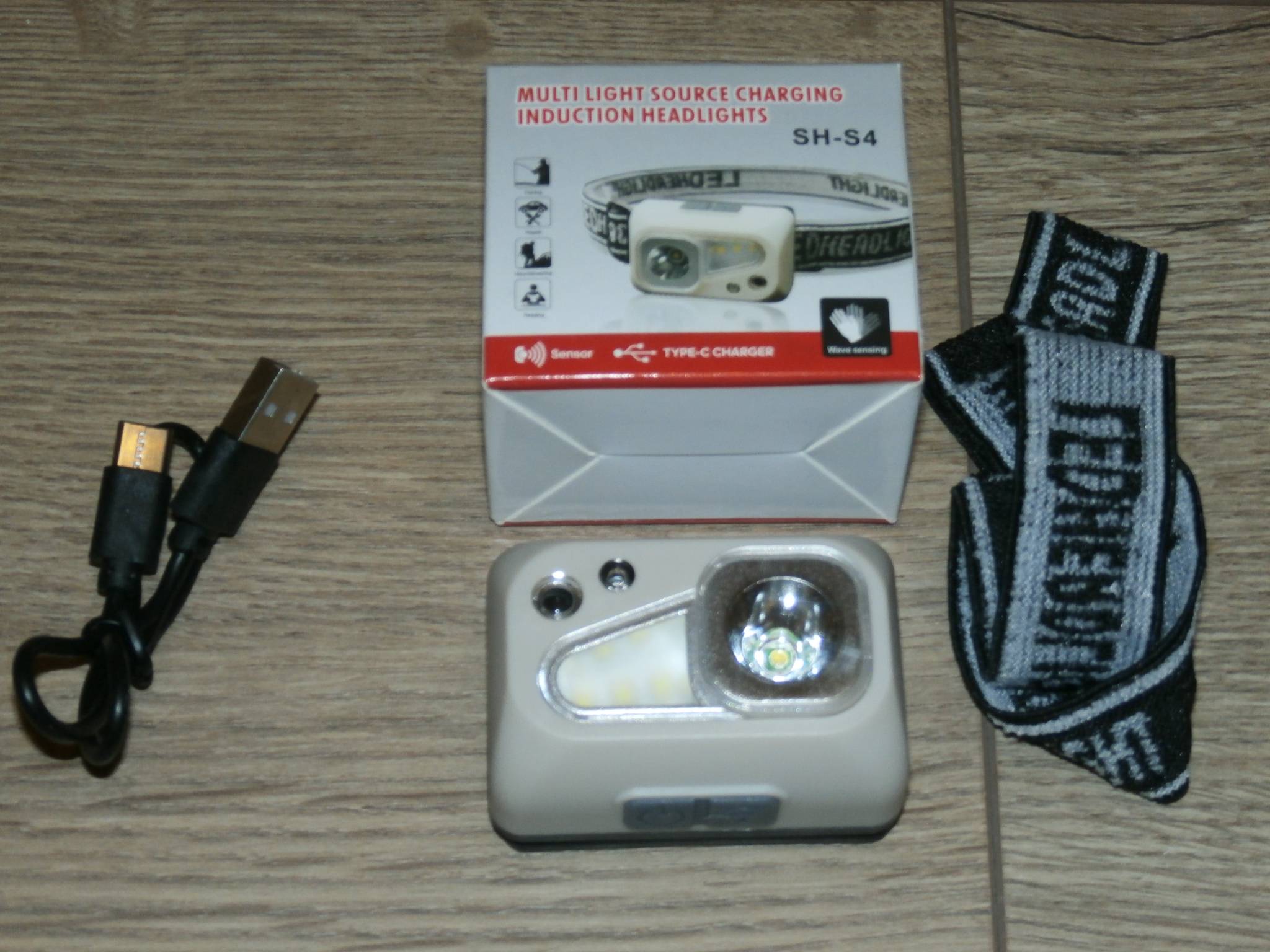 Ліхтар налобний з вбудованим акумулятором SH-S4-XPE+3SMD(white+red),Motion Sensor,ЗУ Type-C (в наявності 1 шт.)