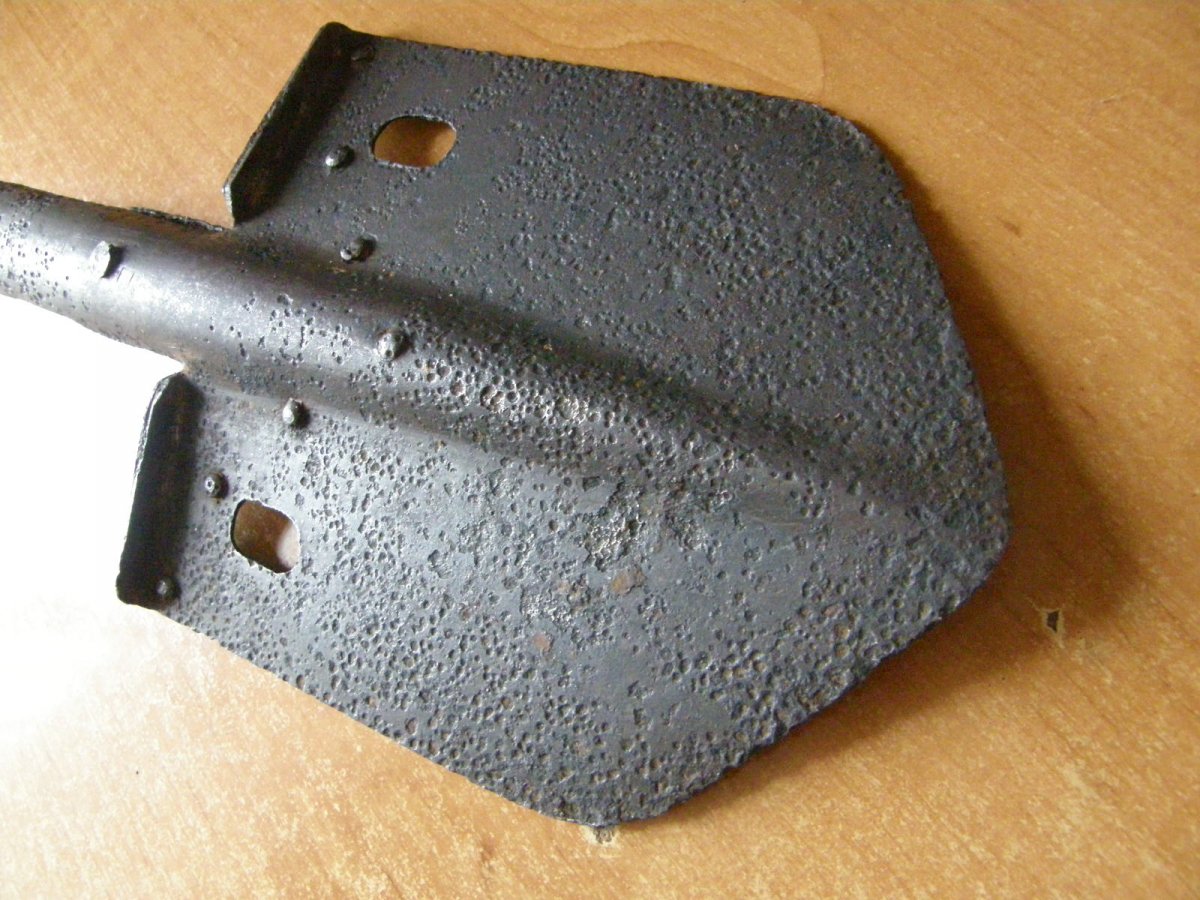 Копана лопатка армії Італії. В наших краях рідкість. Залізо в доброму стані,після чистки можна використовувати за призначенням. Є залишок черенка ( всередині в тулейці). Лопата придатна до використання