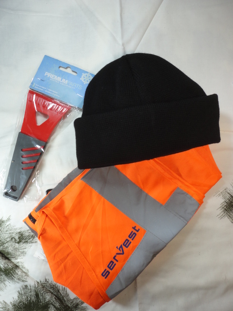 (Лот №11) 3 предмета: Шапка,светоотражающий жилет,скребок (с 1й гривны ) Новий