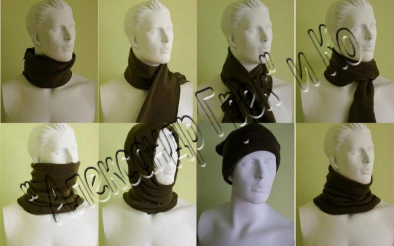 Благодаря длине шарфа, его можно носить и как шарф-трубу и как обычный шарф. При ношении в качестве шарф-трубы или балаклавы, шарф можно складывать в несколько слоев, что придает большую плотность.
