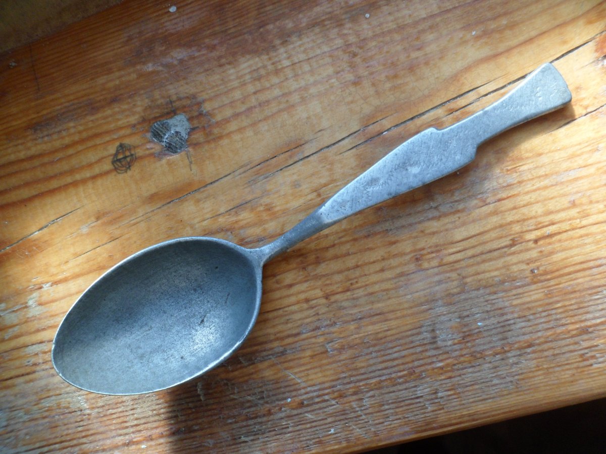 Ложка РККА, геометрія не порушена, не з"їдена, домашнього зберігання. На одній стороні нанесена змійка, а на зворотній відмітка хрестиком (що за зарубка - невідомо). Можна використовувати за призначенням.