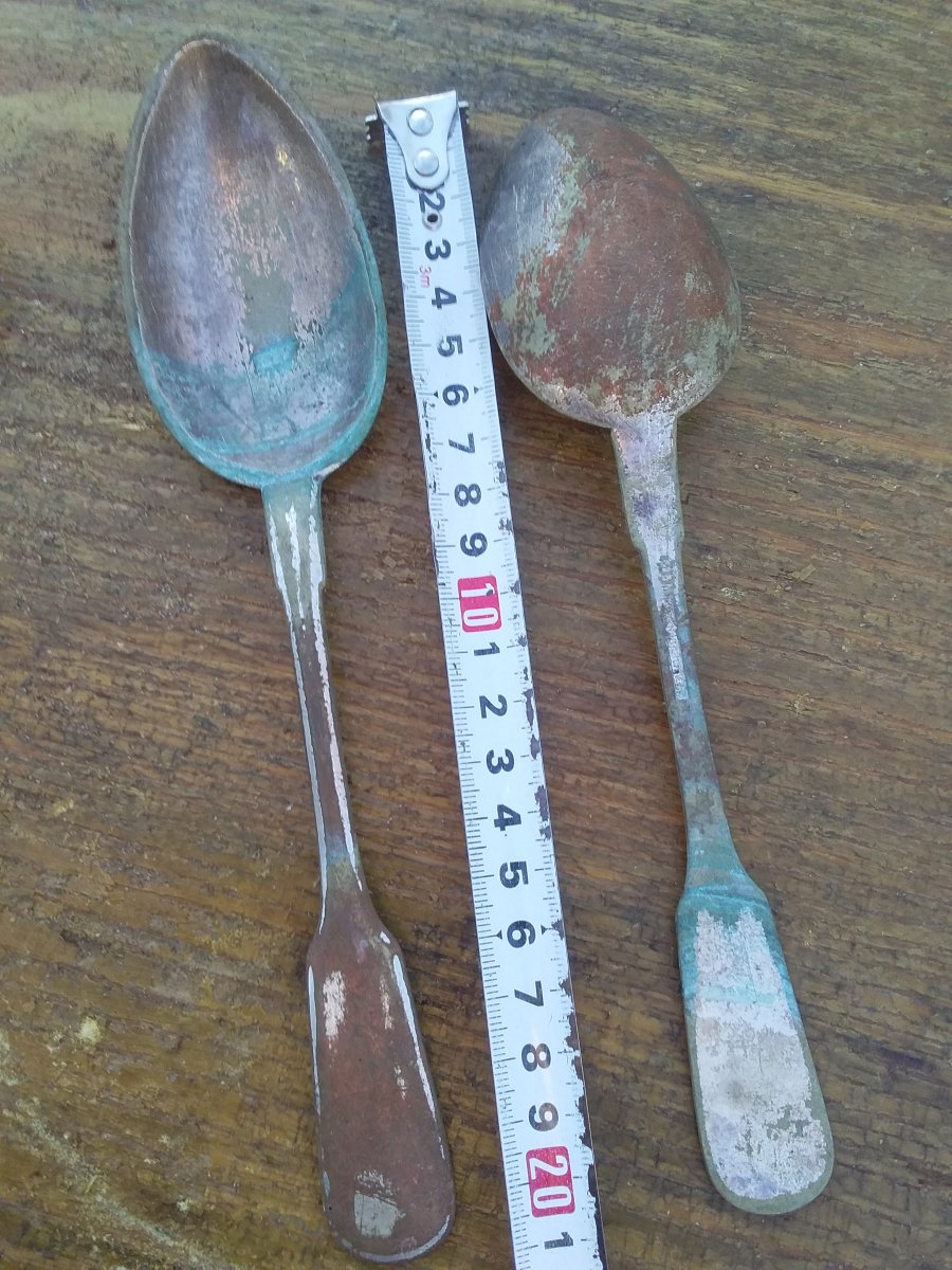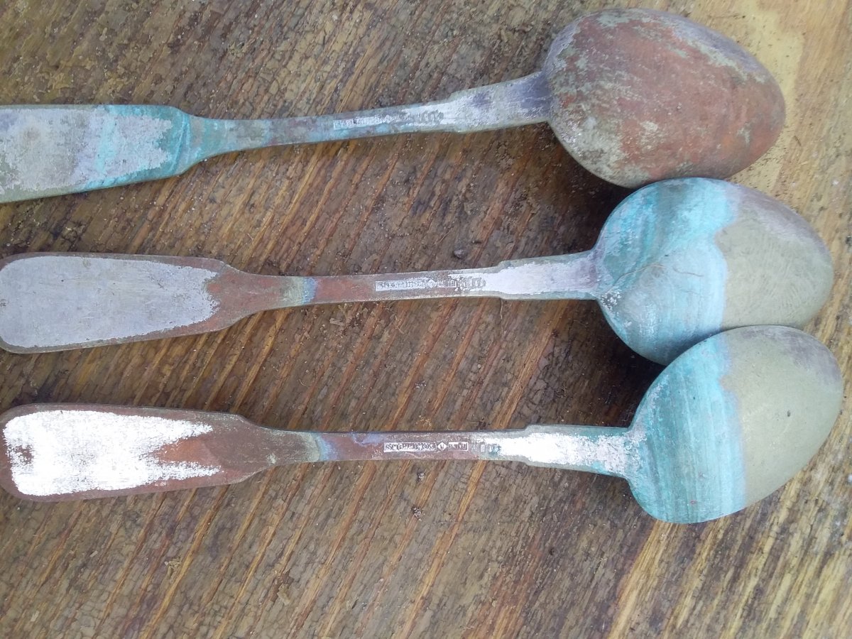ложки були викопані із німецького бліндажа, на одній по середині є маленька тріщинка.( в лот входять усі три штуки.)