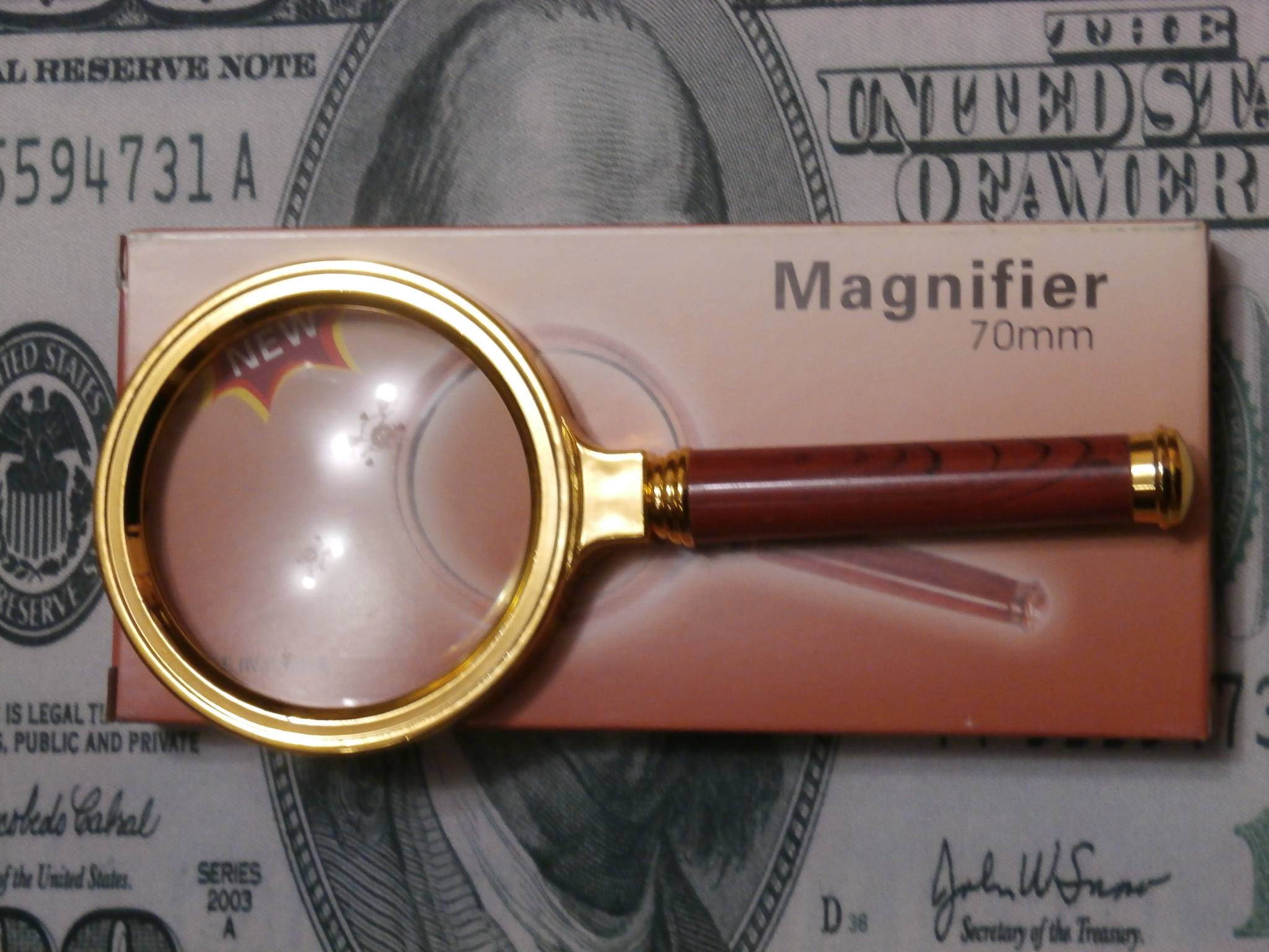 Лупа просмотровая (золотистая / дерево) – классическая лупа в интересном исполнении: корпус модели имеет золотистый цвет, а ручка выполнена в окраске «под дерево». 6-кратное увеличение лупы и 70-миллиметровый диаметр позволят рассмотреть самый мелкий текст и детали изучаемых предметов. Стеклянная линза способна передавать четкие цветокорректные изображения с минимальными погрешностями.. Увеличение ,кратн. :6 Материал линз :Стекло Диаметр обьектива,мм:70 Масса: 155 гр