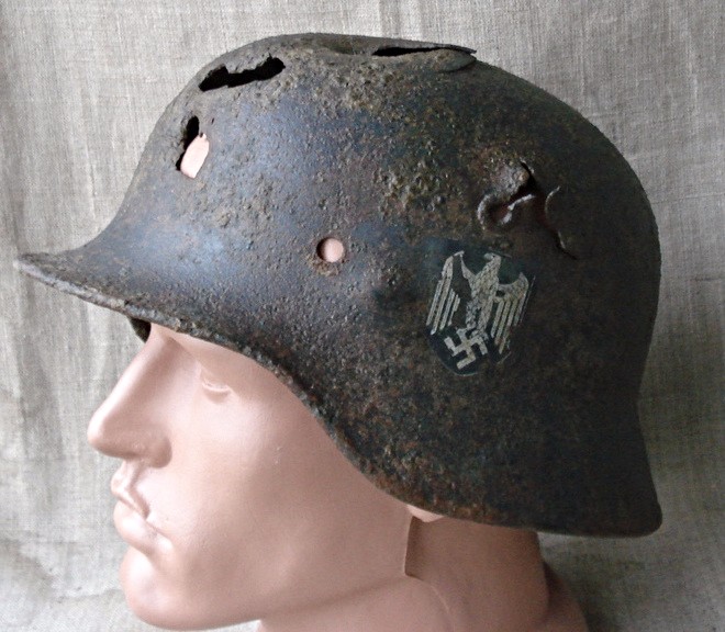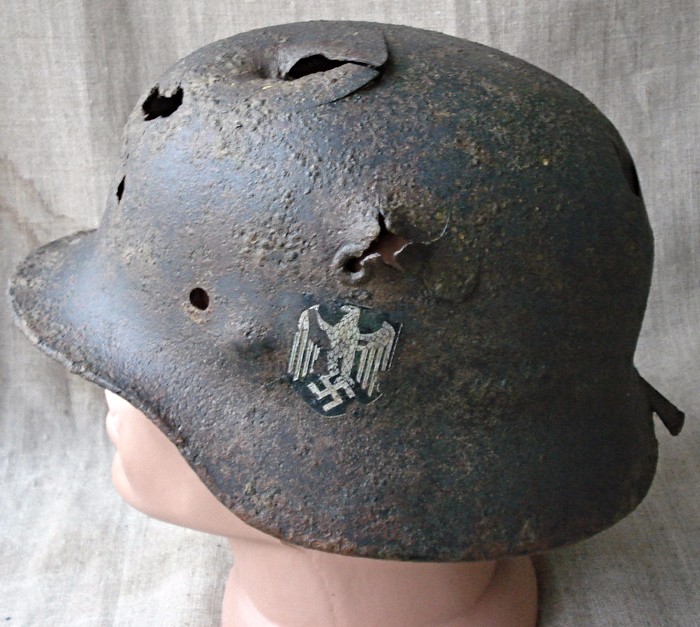 М-40 боевой антураж,по клемерам 65 см.Крепкий и тяжелый шлем-все дыры это не гниль а осколочные и пулевые.Декаль состаренный новодел.