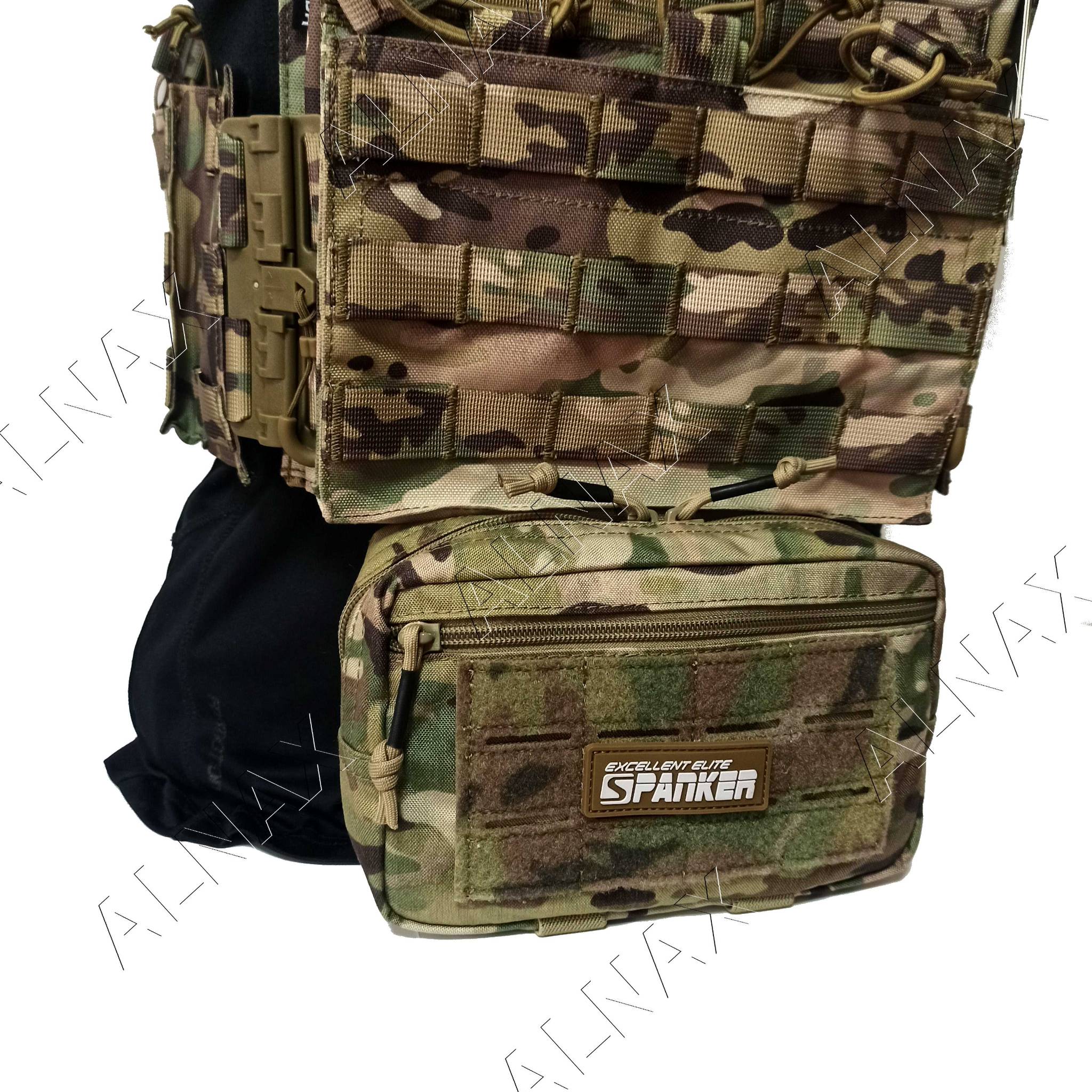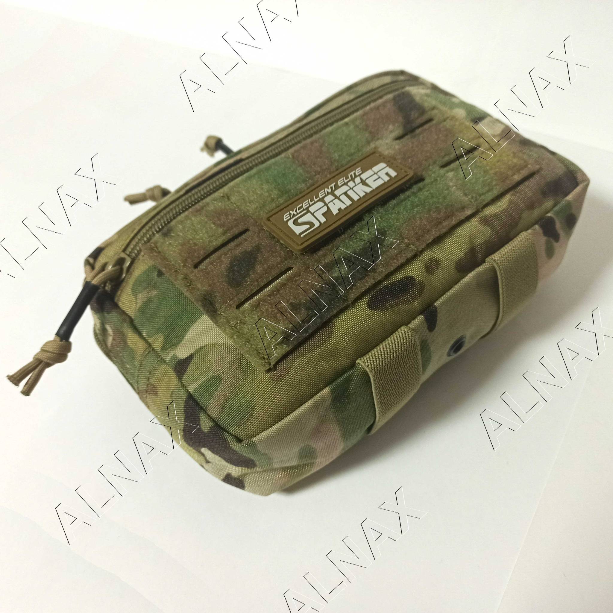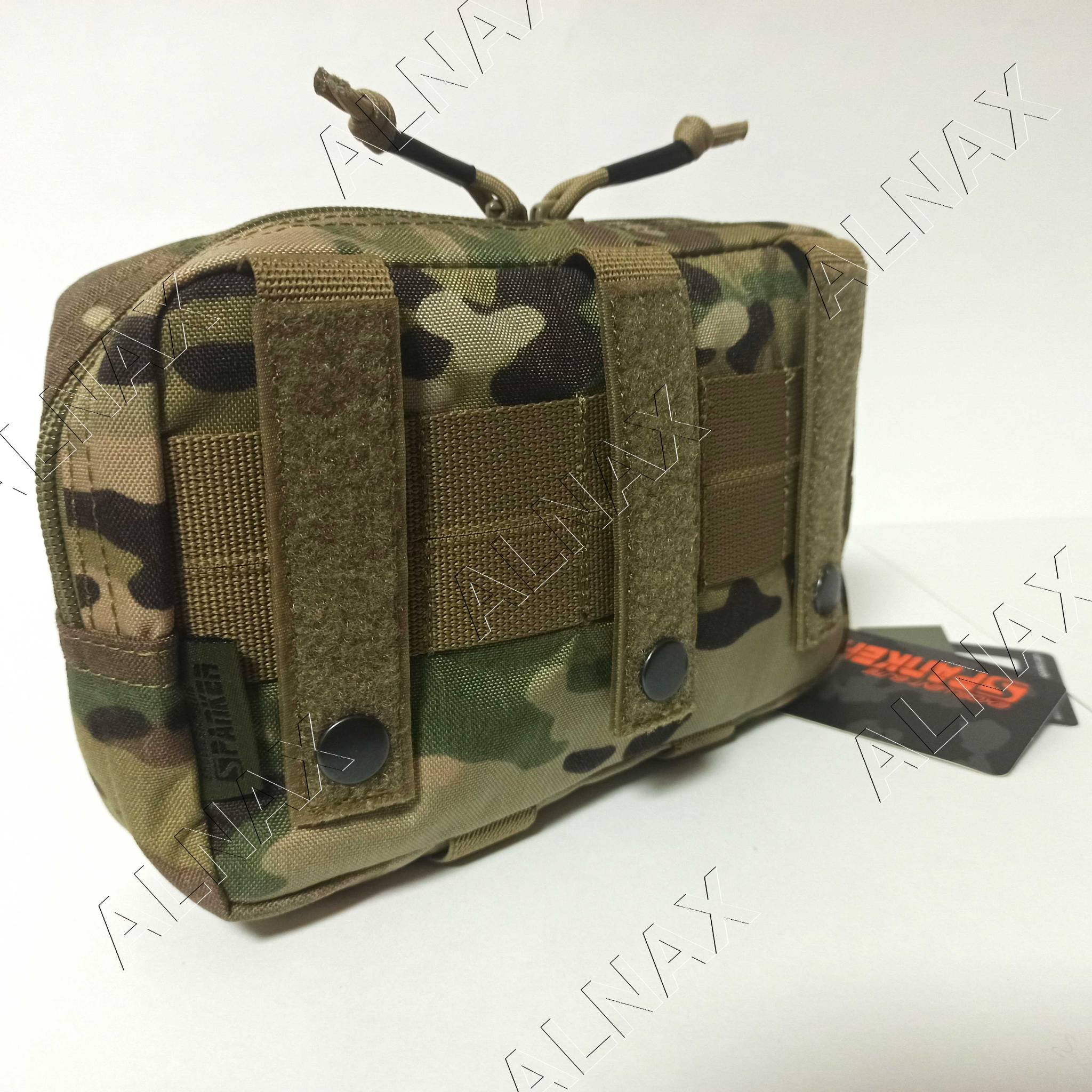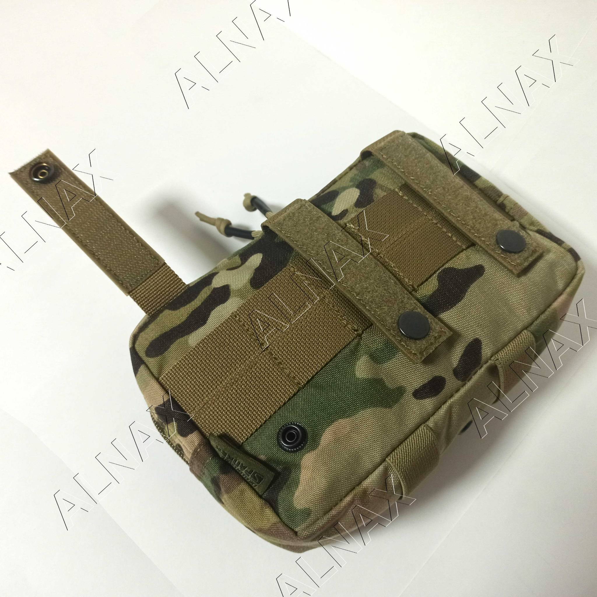 Универсальный подсумок, может крепиться на стандартные стропы типа M.O.L.L.E., или использоваться как полноценный напашник благодаря пришитым липучкам "велкро" на стропах крепления. Снизу пришиты две эластичные стропы для турникета или предметов подобных габаритов.
