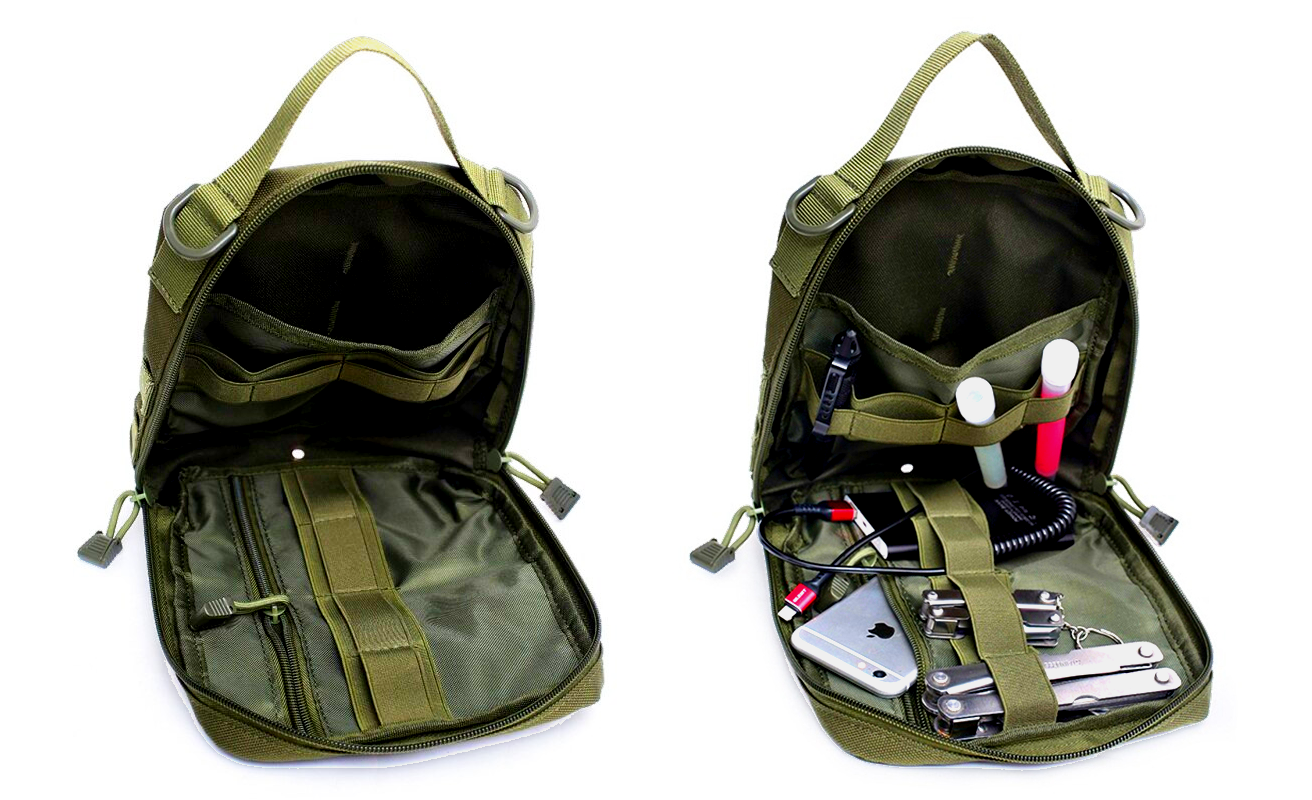 Дополнительный навесной подсумок для переноски и хранения некрупных предметов или использования в качестве полевой аптечки, сделан из прочного нейлона "оксфорд", имеет крепление типа M.O.L.L.E., что позволяет навесить на рюкзак, разгрузку, либо на любой другой элемент экипировки, а также ручку и два D-кольца. Внутри имеются эластичные стропы, основное и 2 дополнительных отделения.