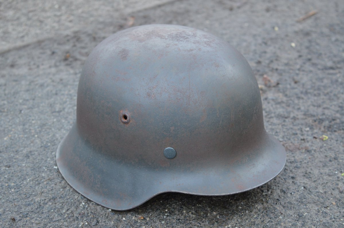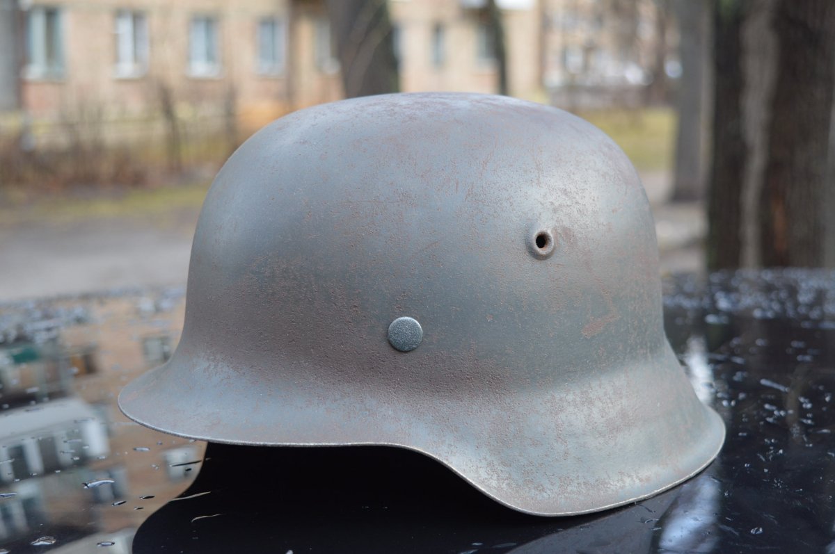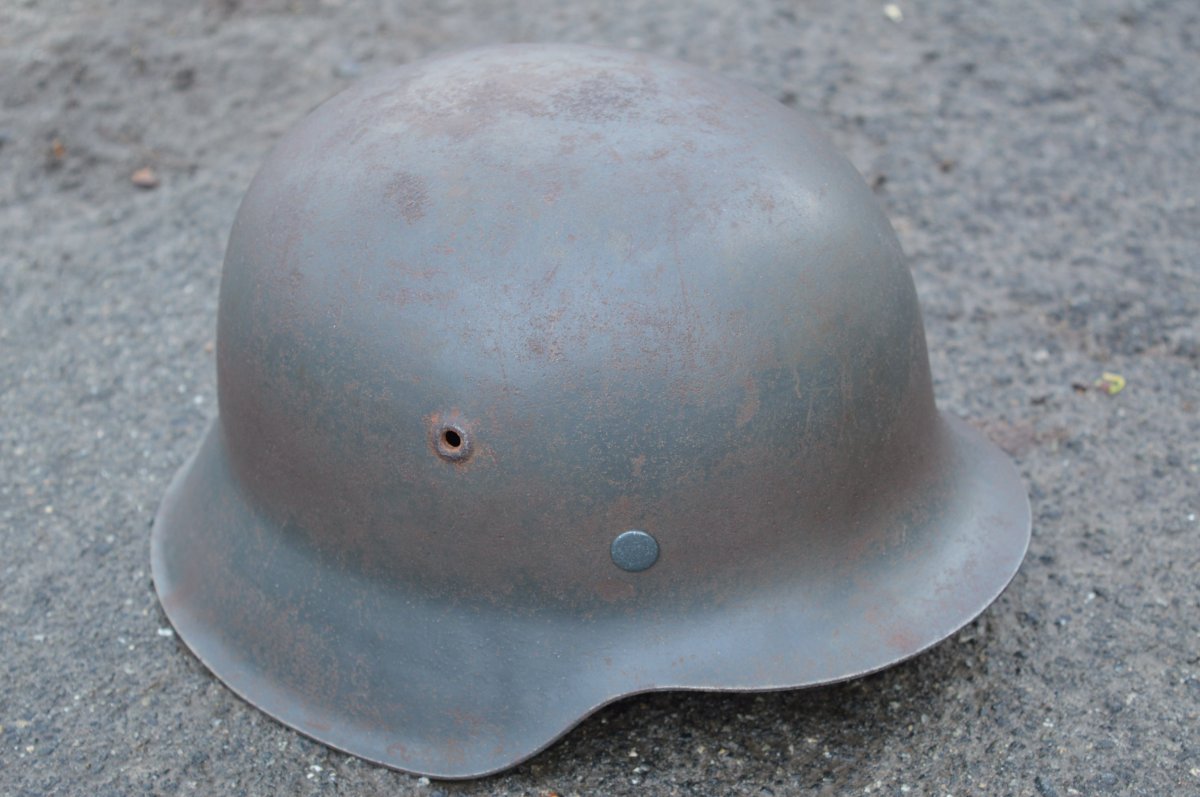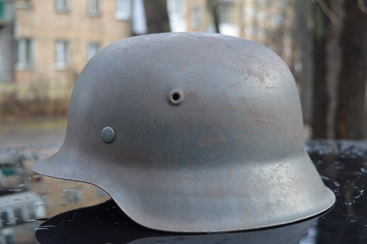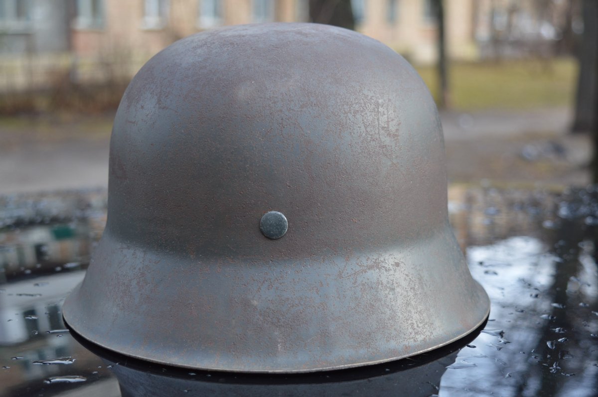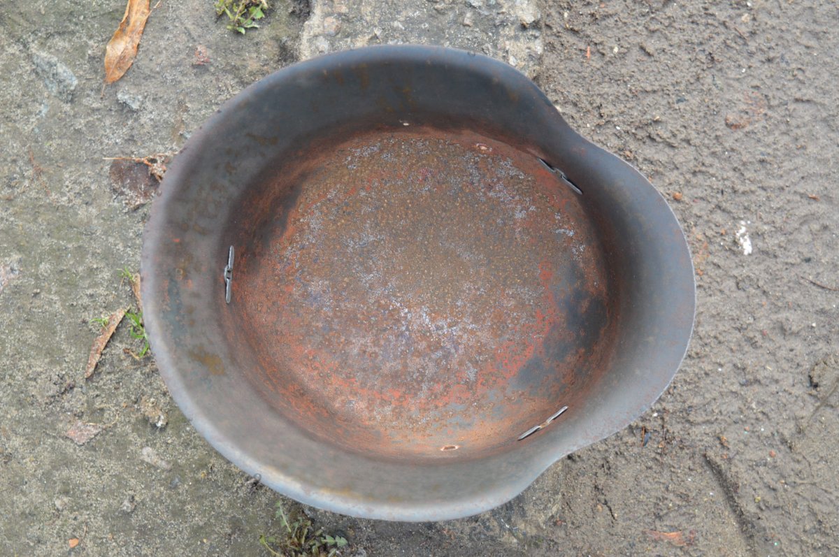 Шлем сарайного сохрана, не копанина, в краске, номерной. Чистился в мыльном растворе и до часа в слабом растворе щавельки. Законсервирован силиконовой смазкой. Трещин, свищей, деформаций - НЕТ. Кламмера новодел.