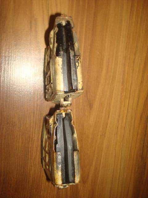 С разбитой, под Камышевахой, колонны. Валялись возле разбитой БМП. Окрас, я так понимаю, зимний. В одном магазине вся начинка (подаватель и нижний упор пружины) из пластика. Недалеко лежала еще парочка, обычных. И тоже в такой комплектации: у одного начинка из металла, у другого - пластик.
