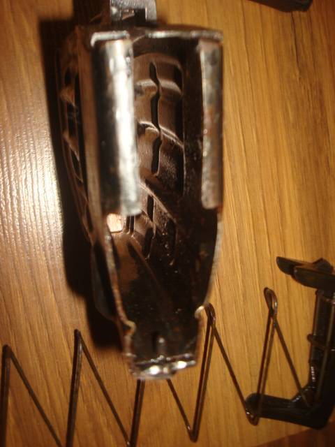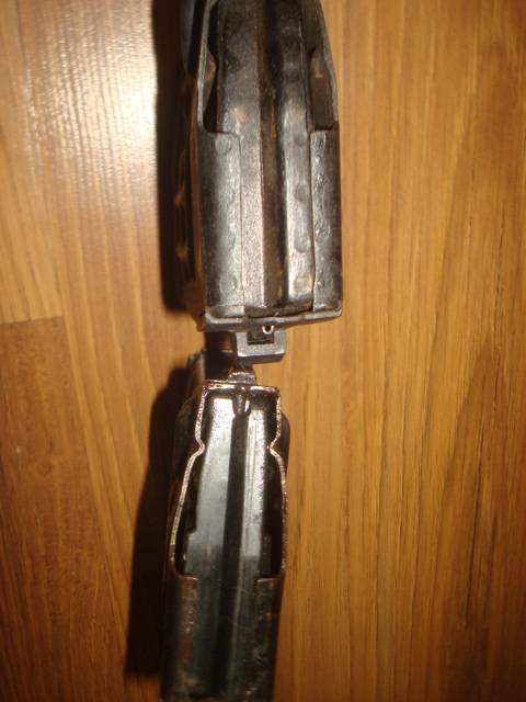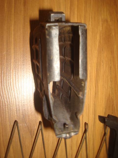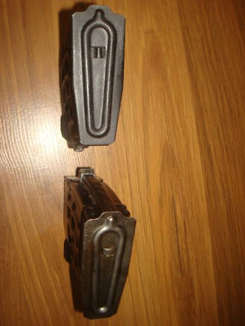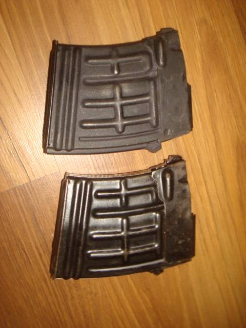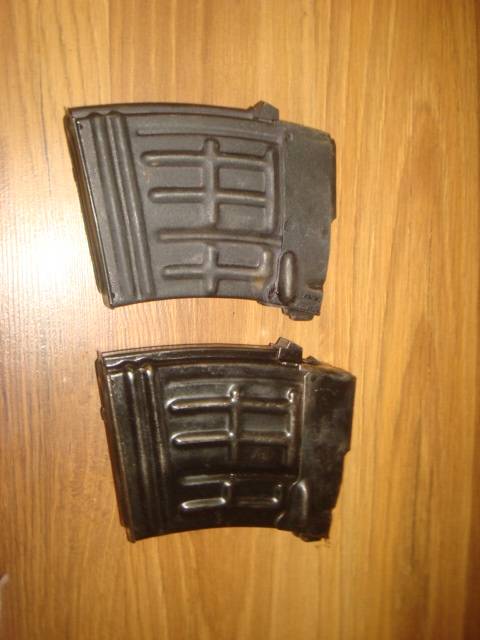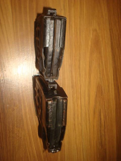 С разбитой, под Камышевахой, колонны. Валялся возле разбитой БМП. Почищен от поверхностной ржавчины. Полностью металлический, включая внутрянку. Было два, но один забрали: в том магазине вся начинка (подаватель и нижний упор пружины) были из пластика.