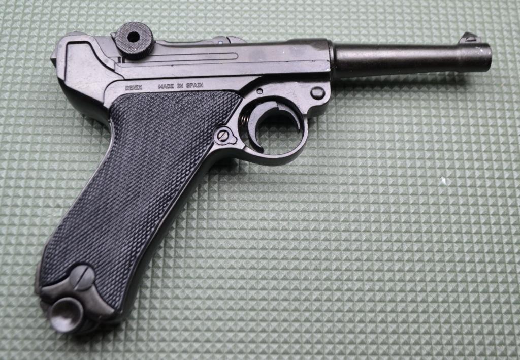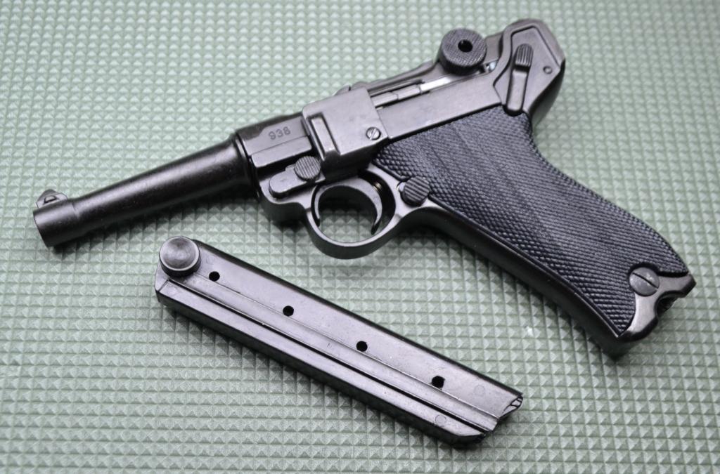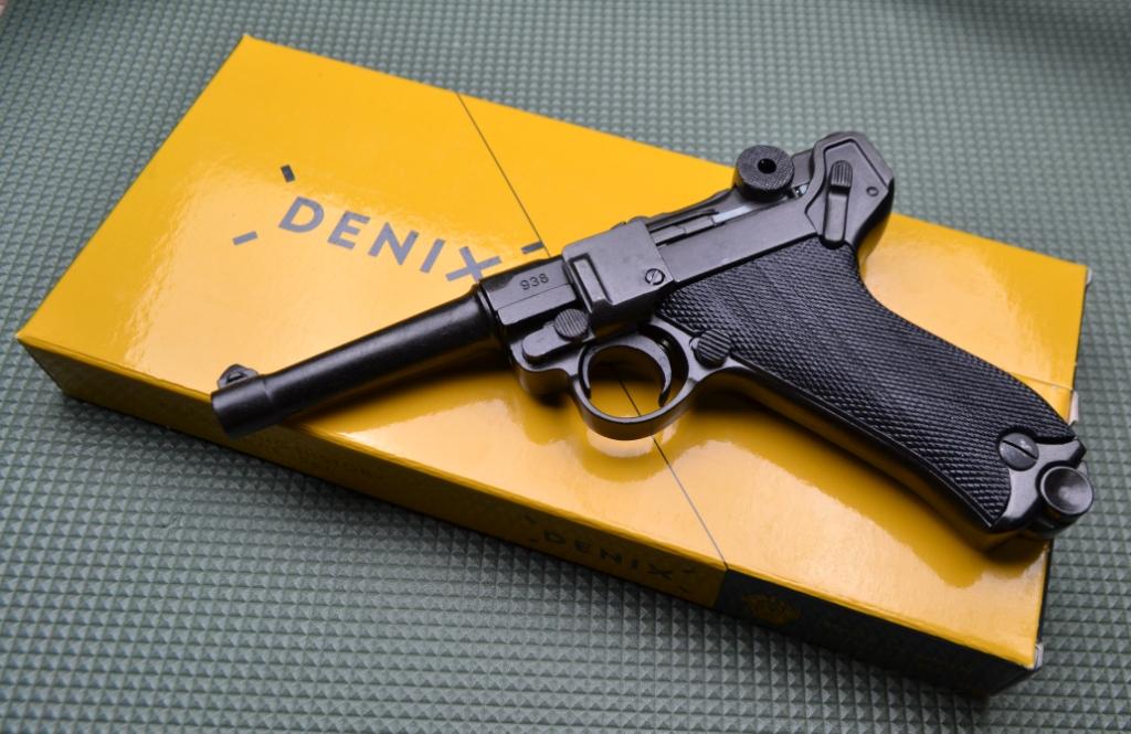 Макет пистолет Люгер Парабеллум P08 от испанской компании Denix отличается хорошим качеством исполнения и внешне максимально схож на боевой прототип. Есть возможность передергивать затвор, спускать курок или вынуть обойму. Размеры, конфигурация и вес макета соответствуют оригиналу. Для производства этого экземпляра использован качественный сплав на основе цинка и пластик для рукоятки.